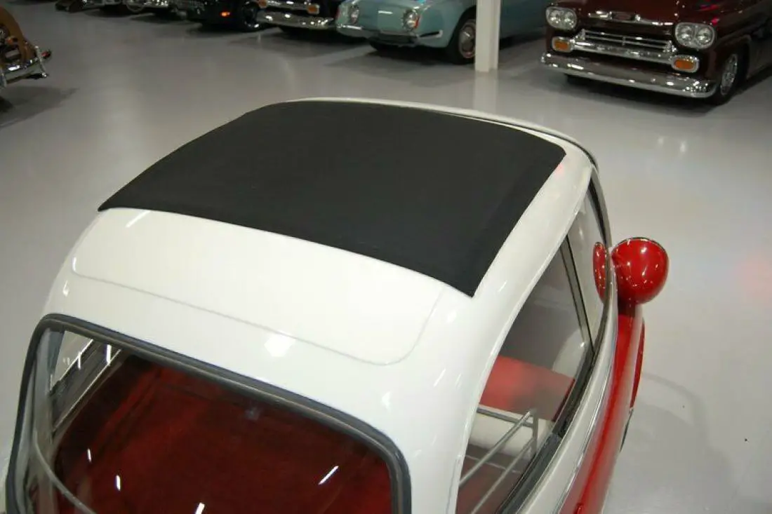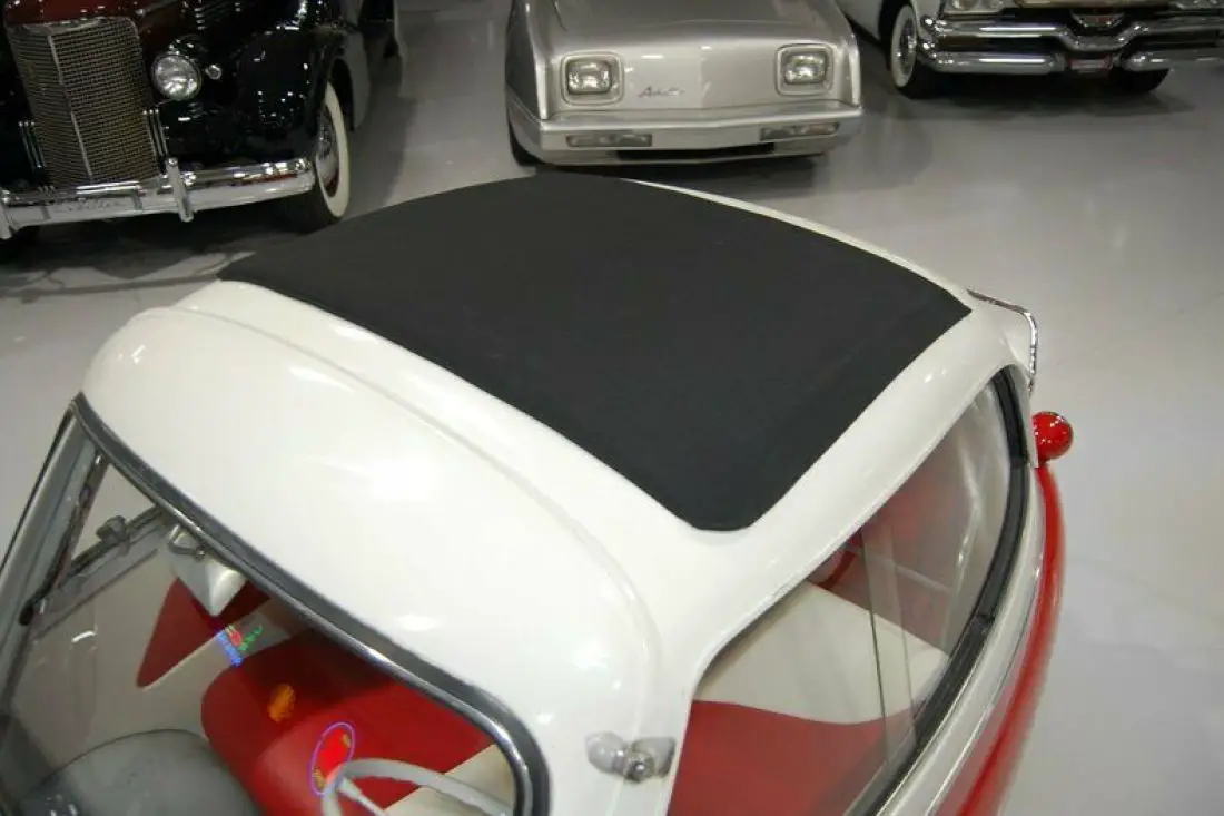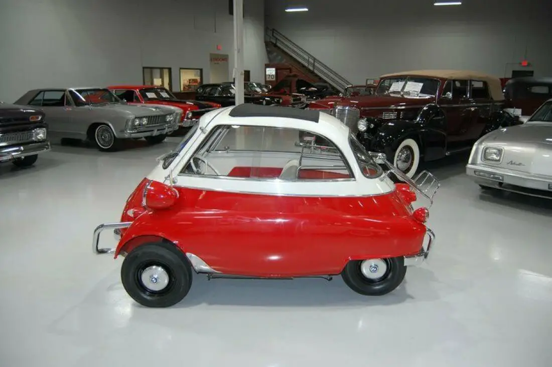The 1957 BMW Isetta 300 was the first Isetta found on American roads, with all previous models being European only. Renzo Rivolta was the inventor of the Isetta bubble car style in 1952 and he later licensed the "half car half motorcycle" to BMW. In 1956 BMW started producing the car for the masses, turning the car into reliable transportation. a 298cc (18.2 Cubic Inch) 13 Horsepower Single-Cylinder 4-Stroke Engine with a One Bing Carburetor mated to a 4 Speed Chain/Sprocket Manual Transmission, the Isetta was capable going 50 mph and getting 50 mpg. The exterior of this '57 Isetta is finished in Red and White that matches the interior of the car. This Isetta sits on 4 10" Steel Wheels with stock chrome BMW Hubcaps and Bridgestone 4.8-10 Bias Ply Tires. The bench seat interior of this microcar is finished in red and white vinyl that complements the exterior look of the car. The driver and passenger enter the the cabin through a front opening door, with the door and steering wheel hinging out towards the front. If you're looking for the cutest and quirkiest car to add to your collection, we've got it right here at Ellingson Motorcars in Rogers, Minnesota!