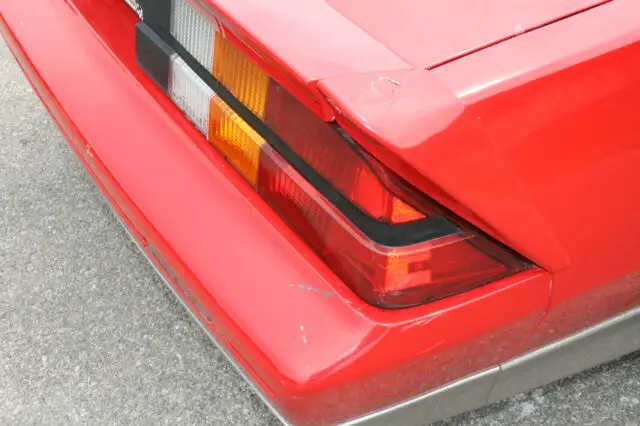 Has a small ouchie in the passenger side rear spoiler. Front bumper shows cracking in paint from flex (they all do it sooner or later)
