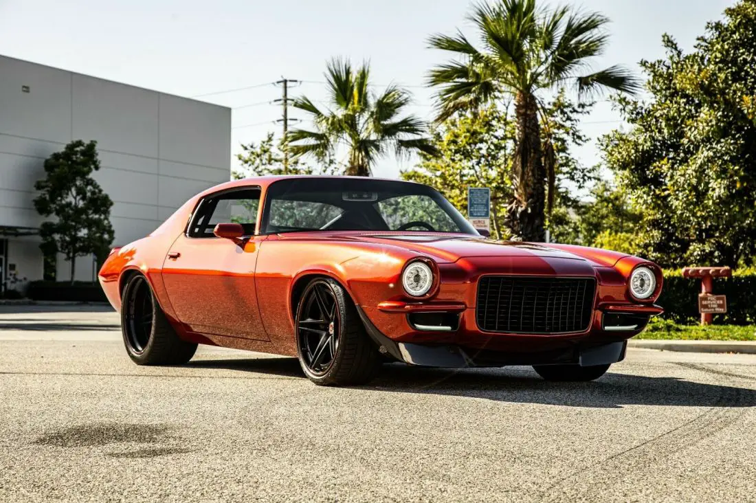 This is an original sheet metal hand built super car that is for sale, but not on sale. It started life with me in September 2012 as a 99% original vehicle as I am the 8th documented owner. I desired to build a one of a kind Euro/American supercar, so I hired the renowned car designer Sean Smith. Sean orchestrated the 3D scanning of the entire vehicle allowing his ideas of precision parts to be fabricated and brought together. The colors, paint and interior materials were selected and the craftsmen chosen to bring it to fruition. This 1971 Chevrolet Camaro Z28 is now known as Infrared Camaro. It can be found on social media with a build history on Instagram under "Infrared1971". As stated this build was designed and orchestrated by Sean Smith Designs keeping the timeless GM heritage styling cues and design features but adding modern American and European touches. The original sheet metal body lines were meticulously sharpened and detailed, but the original sheet metal kept unaltered. The sheet metal work was by Stones Metal Shop but paint and body work perfected and performed by Leo Vargas and the highest quality materials used from BASF/Glasurit. The color is Shakir Orange Metallic exclusive to the BMW M series. It was applied and allowed to cure for 3 weeks, color sanded and 3 additional clear coats applied to bring out the depth in the paint and highlight the superb body lines including the integrated rear bumper and rear spoiler into the body lines. The billet steel machined door hinges manufactured by the Ring Brothers snuggly hold the doors in place, while their machined aluminum black hood hinges take care of engine bay accessibility. The custom flush front and back mounted glass both were custom produced and installed by Eddie Kotto (glass supplier to Chip Foose). The wheels are HRE forge 3 piece S207H with high gloss black barrels and matte centers shod in Michelin Pilot Sports 275/30-19 up front and 345/30-20 out back attached to Baer 14" Extreme 6 piston calipers powder coated in Aztec gold. The car was a full bumper Z28 but now sports twin split bumperettes with the original Z-28 shorter and wider grille opening filled with a "one off" billet aluminum machined grille by EVOD Industries covered in high gloss black powder coat. Sharing the front end are "one off' aluminum machined air scoops that cool the brakes, feed the engine intake system and provide day time running lights and amber turn signals, also powder coated in high gloss black. The headlamps are Dapper Lighting 7" HID lights featured with amber turn signal halo's. The stance of the car is enhanced by the 2" extended rocker panels all the way around making it appear lower while covering the factory pinch welds and stainless lines feeding the fuel and brake systems. The black stainless steel machined exhaust tips penetrate the rear lowered valance followed by the 3" stainless steel TIG welded exhaust with X pipe and Helmholtz resonators all coated in Burnt Bronze Cerakote. You notice underneath the full road car suspension by Detroit Speed which includes their hydroformed subframe, subframe connectors, JRI coil overs, heavy duty sway bar along with rack and pinion steering. Out back is their full Quadralink suspension system sporting adjustable JRI coil overs, sway bar and GM heavy duty 12 bolt Posi traction unit with 3.90 gears. All brake lines and fuel lines are stainless steel and meticulously routed. You notice the Detroit Speed roll cage beautifully wrapped in leather and catch a glimpse of the entire interior wrapped in Hyde's Lamborghini Nero Perseus leather and Alcantara hinting European design. All interior leather and Alcantara were meticulously selected, cut and sewn in place by the craftsmen at Gabe's Custom Interior. Standing out are the "one off" billet machined steering wheel wrapped in leather, the control center console ring, illuminated GT40 style switches and Porsche influenced gauges set in a one of a kind machined aluminum dash console, all machined by Sparc Industries and finished in brushed nickel. You notice the Sparc Industries machined and engraved 6 speed aluminum shifter ball center wrapped in matching leather identifying the gear sequence for the heavy duty Stage 2 Bowler Transmissions built Tremec unit engaged by a dual disc McLeod's hydraulic clutch mated to a billet steel flywheel. You then discover the custom built Chevrolet Performance 454LSX fuel injected power plant generating 600hp and 560ft lbs of torque to the rear wheels with its custom shaved MSD manifold, Mast Black label heads covered in matte Shakir Orange. The Holley 90mm throttle body, 4" aluminum intake tube, accessory drive components/ systems and exhaust headers are coated in Burnt Bronze Cerakote. All hoses are the high end gold tipped XRP hoses. It now becomes apparent this restomod build is closer to a high end supercar ready to cruise the coast highway, auto cross, road race or display proudly in your collection. The cost to duplicate this hand built car is far more than the asking price along with the 2 year build time. It has been a great experience to actively participate in this high end build and meet and work with great craftsmen that built this car, but it is now time to work on the next build project. The detail professional appraisal, additional photographs, documentation or any inquiries are available by contacting me. A personal review, inspection and test drive can be arranged as well. Shipping in or outside of the United States can be arranged.