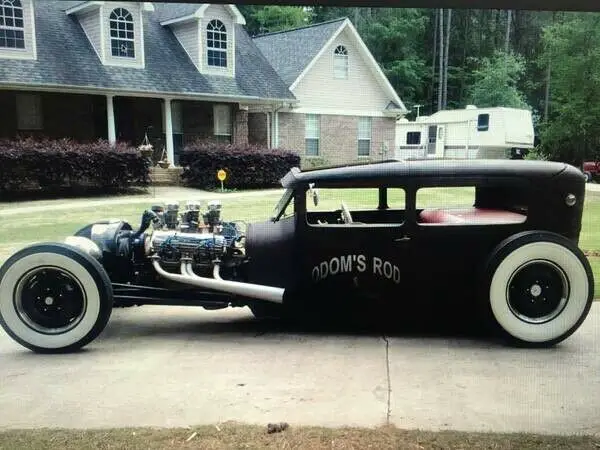 1929 Ford model A. Chopped channeled and frame has been Z'd. 9-bolt rear end. 1957 Oldsmobile rocket J2 with reverse throttle body transmission. Custom made cowhide interior. Ask for any other questions. No title due to age.
