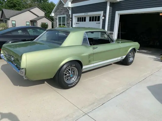 1967 Mustang GTA Tribute Car. The car was originally a C-Code 289V8 Automatic Coupe with Deluxe (Vented) Hood and Center Console, with Power Steering. The car was also originally a Lime Gold Exterior with two-tone green interior. The car was a barn find out of Illinois, when purchased by me in 2004, with an original 46,000 miles.