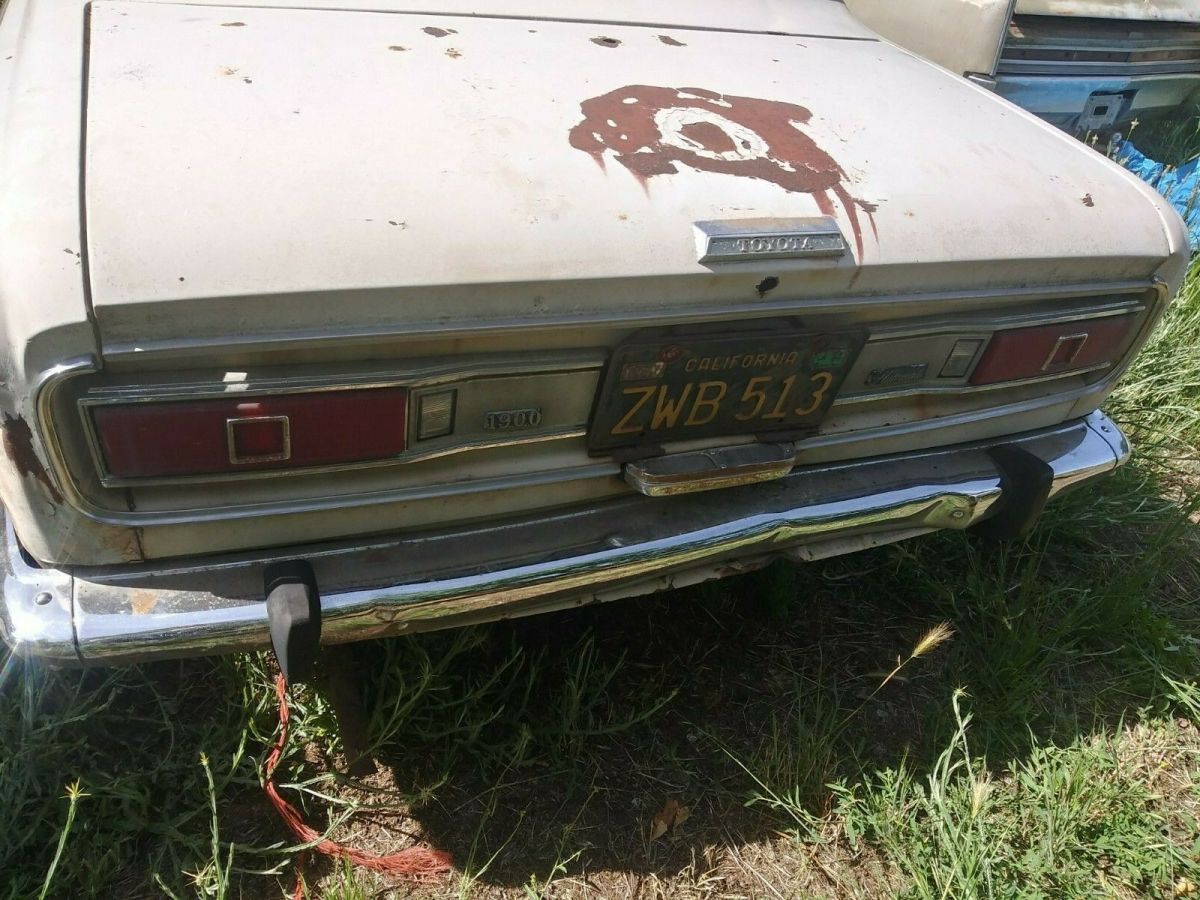 1968 Toyota Corolla Deluxe two-door very rare 76000 miles floors look good seats need to be redone these needs to be cleaned up not seeing very much rust there is some on the very top. this model is hard to find it dose run no title comes with bill of sale text me for more photos at area code 541-761-4507 I can store the car up to 2 months after you pay for it looks like everything's there for the car motor tranny rear and front ends everything this would be a great project and 1968 Toyota Corona you don't see these. No title video of it running did I mention the tires still have the Nabis on them they're like brand new .