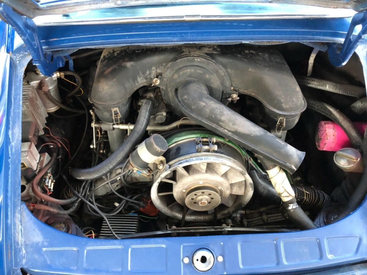 This is a 1970 Porsche 911E that I recently acquired from the 2nd owner who last drove it in 1984. He bought it in 1977 or 78 (he couldn't remember). He drove it for several years before electing to convert it to an "RS look" in 1983. New SC quarter panels were correctly installed (by drilling spotwelds and removing lead), fiberglass bumpers and a ducktail were installed. The gaps all the way around are as good or better than factory (including the duck tail which is nearly impossible). A complete new front suspension was installed (in pics), rear bushings, torsion bars, adjustable spring plates, Rial wheels and tires, stainless brake lines, Bursch exhaust, Cibie lights, Koenig seats, factory dash, wind shield, and correct square weave carpet. He was nearly finished putting the car back together when he bought a brand new 1984 Corvette... and never touched the Porsche again. Yes, you read that correctly. He started the car once when he moved to his current residence about 24 years ago.