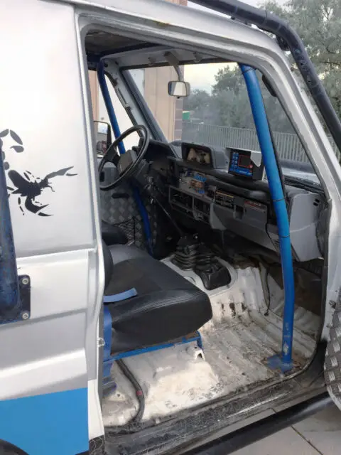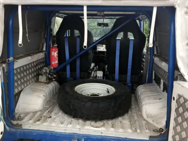Rear roof has been cut off, and a custom aluminum-skinned cover put in its place. Rear "hatch" is a heavy rubberized canvas type material with a clear vinyl window in it. Rear doors have been cut as part of the customization. The whole thing can be unbolted if desired for a demi-convertible effect.