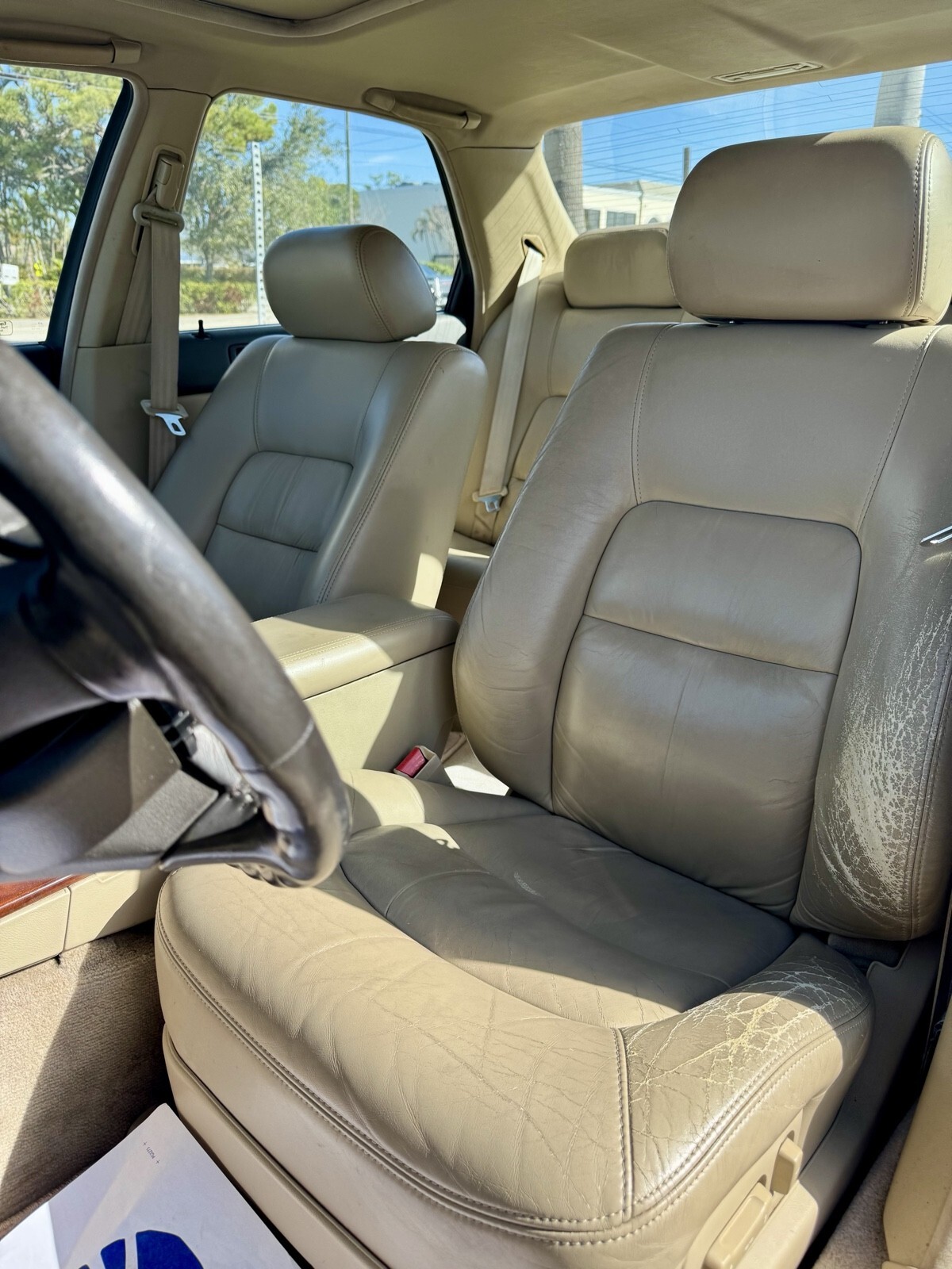 The car is mechanically sound. Paint is fading due to age. It’s the original paint. Seats also have fading and a tear in the back seat.
