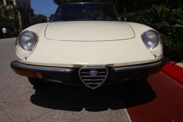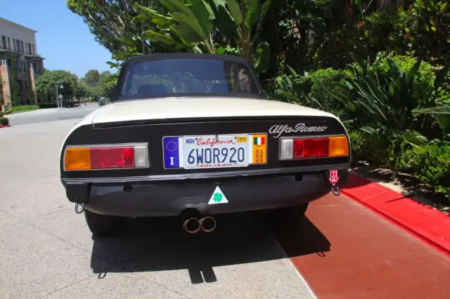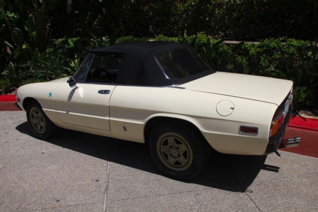 1982 Alfa Spider with factory crème paint, dark blue interior and recently replaced black Hartz cloth top and rare factory hardtop. Blue cloth interior is in excellent condition. Car is registered in Florida but has always lived in Southern California and was used as a daily driver (I have an office in both states). Car has new shocks all the way around along with new brake pads and steel brake lines. Tires are fresh H-rated Kuhmo 165/70/14 tires. Front suspension bushings and ball joints were replaced as needed. All of the rear suspension bushings and rubber are new.