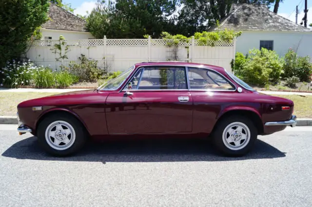 This is a very original and rust free car and a beautiful example of a 1972 Alfa-Romeo GTV coupe with all of it's original factory specifications and options intact including original 'Rosso Amaranto' (Dark Maroon/Plum) color paint and a mostly all original Tan color seats interior! The car also boasts its original and factory correct 'Campagnolo Turbina' magnesium wheels made by 'Campagnolo' and used by Alfa Romeo on many of its cars over the years and its original spare in the trunk.
