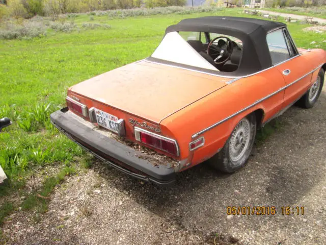 1976 Alpha Romeo Enizione Spider. This is a complete Alpha Romeo Spider, but it has not been on the road in several years. Please look closely at all of the photos. Approximately six years ago, the previous owner took the car to Foreign Auto Repair in Layton, Utah. The mechanic/owner advised that the car needed a valve job and additional minor engine work. The owner of the car advised Foreign Auto Repair that the cost was more than he could afford and they could keep the car. The owner of Foreign Auto Repair had health problems and sold his shop. I got the car on a "Mechanic's Lien." After several months of work with the Utah DMV, I received a clear Utah title in my name. The repairs on the car were not completed. The engine has a new head gasket sitting on the engine block and all of the parts that were removed from the top end of the engine are in the trunk. The engine is not stuck, but it has not been driven or started in six years. The body on the car is straight, and the rust problems appear to isolated to the rockers on both sides. Again, Please look closely at all of the photos. This is a "No Reserve" auction. The starting bid is $200. If no one else bids more than $200, you will win the car. The car is a rather rare model and could be restored. It has the original wheels, all the glass is good, and the car appears to be complete. Even as a parts car, it is worth a lot more than $200. I will gladly help the shipper you select to ship the car anywhere in the world. If you have any questions, give me a call. My number is (801) 745-5835 and my name is Bob. Good luck bidding.