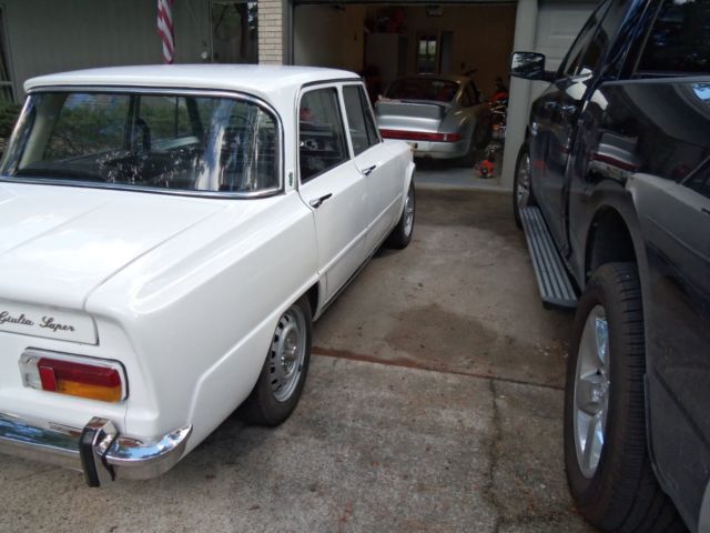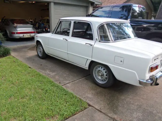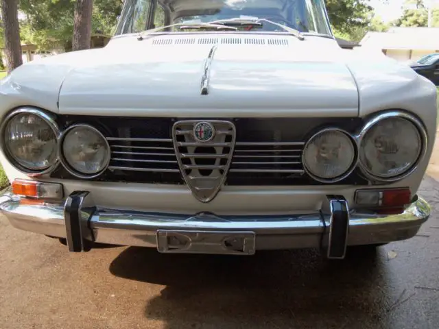 Up for Auction and your consideration is my Euro spec 1970 Alfa Giulia Super 1600.Extremly solid top to bottom with a beautiful respray several years ago per the previous owner.This little Alfa is extremely straight with excellent gaps and showing no eveidence of collision.In my ownership from 6/19/2017 to 10/16/2017 I have spent over 11k in maintenance including a complete rebuild of the Weber carbs including new throttle shafts and new intake boots.The interior is beautiful showing much restoration work done previously.including seat covers,door cards,headliner,dash top etc.The 1600 engine pulls strongly and is a joy to drive especialy at freeway speeds.If the cars sits for a lengthy time it can be a little cold blooded upon start up but typical of other carbureted Alfas I have owned.Again the list of maintenance and parts are way to lengthy to list so I prefer you to call to discuss are ask any questions you have rather than message through ebay.I can be reached at 832 641 8666.The car is listed localy as well so I do reserve the right to end the auction early.I prefer a bank wire are certified check as well as a 500.00 deposit on Pay Pall.The car is for sale where is as is with no expressed warranties.Again please call with questions are you are welcome to come view the car by apointment.The reserve is set below Hagerty number 3 evaluation of 31,700.Thanks for bidding.