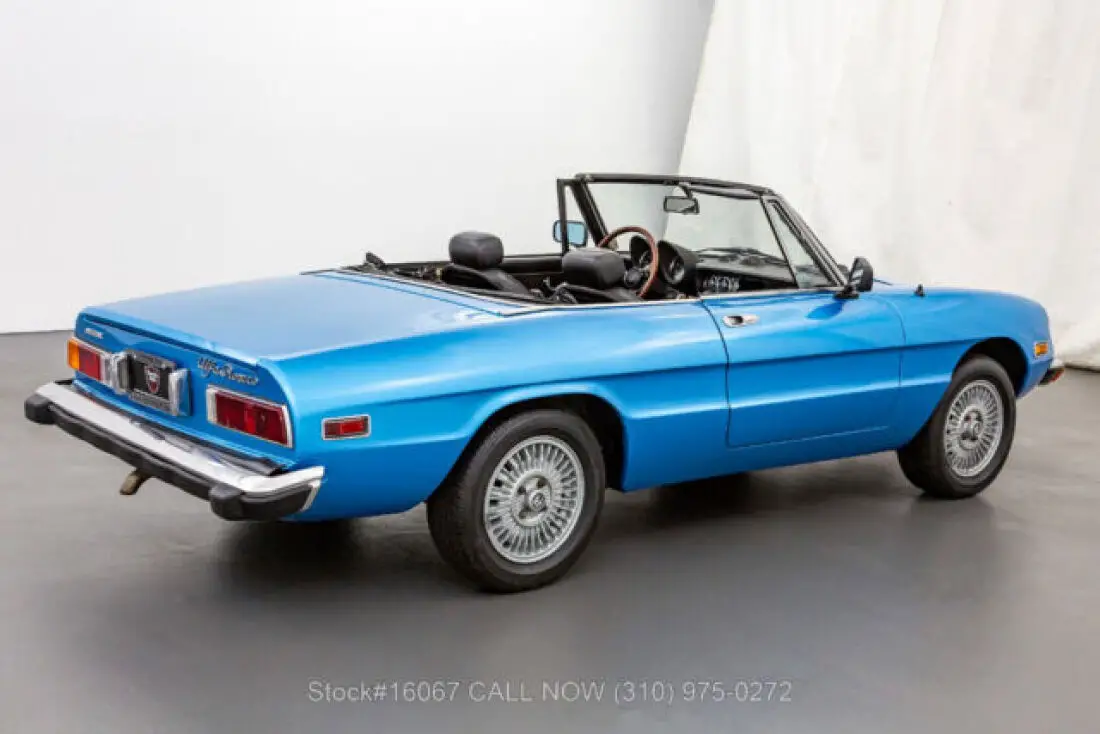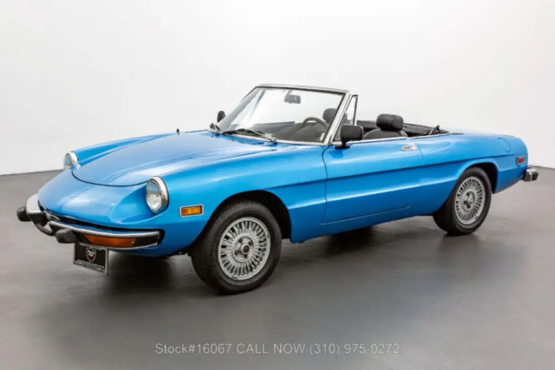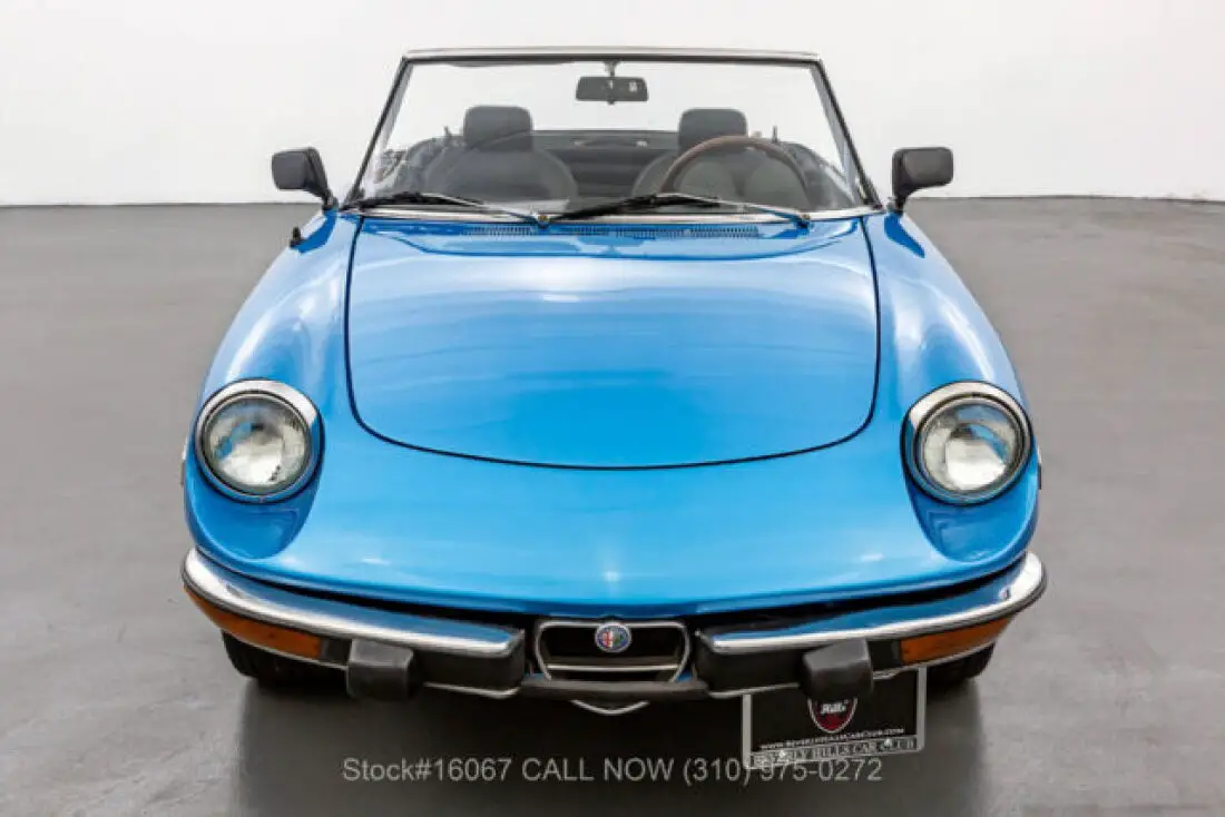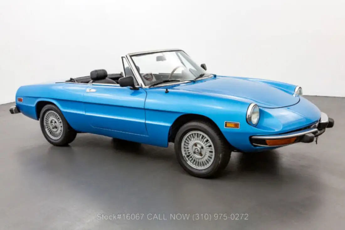 1974 Alfa Romeo 2000 Spider VeloceThis 1974 Alfa Romeo 2000 Spider Veloce is finished in Light Blue combined with a Black interior. Equipped with a manual transmission, fuel-injected inline-four engine, four-wheel disc brakes, single exhaust outlet, Jaeger instruments, black convertible soft top, side marker lights, aluminum door sill plates, three-spoke steering wheel, chrome bumpers with rubber guard, Bridgestone Potenza tires, alloy wheels, and a full-size spare tire fitted in the trunk. Amenities include manual-crank windows, dual-side rearview mirrors, cigar lighter with an ashtray, a glove compartment, and a Panasonic radio. An extremely desirable fuel-injected 2000 Spider that is available in a delightful color combination. For $10,750