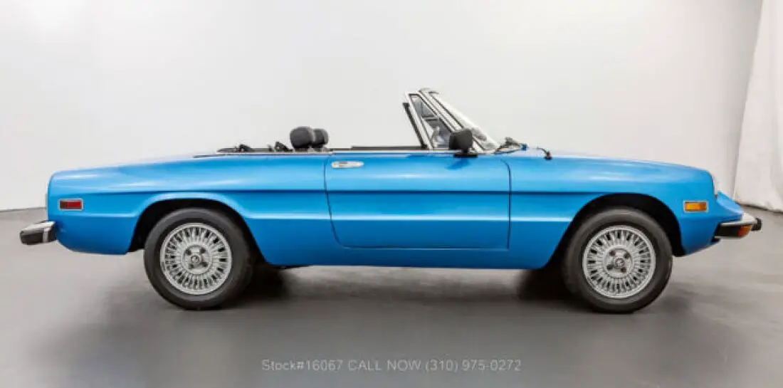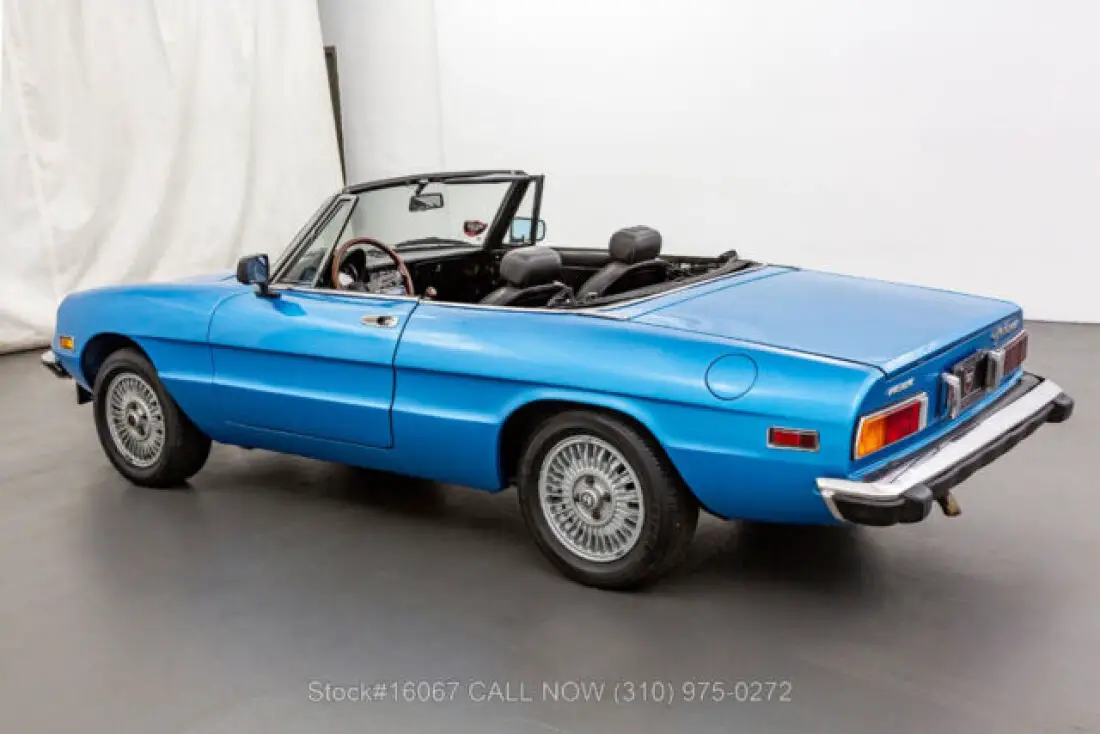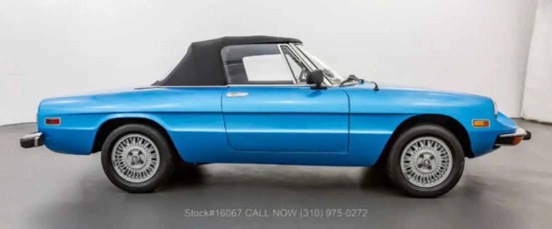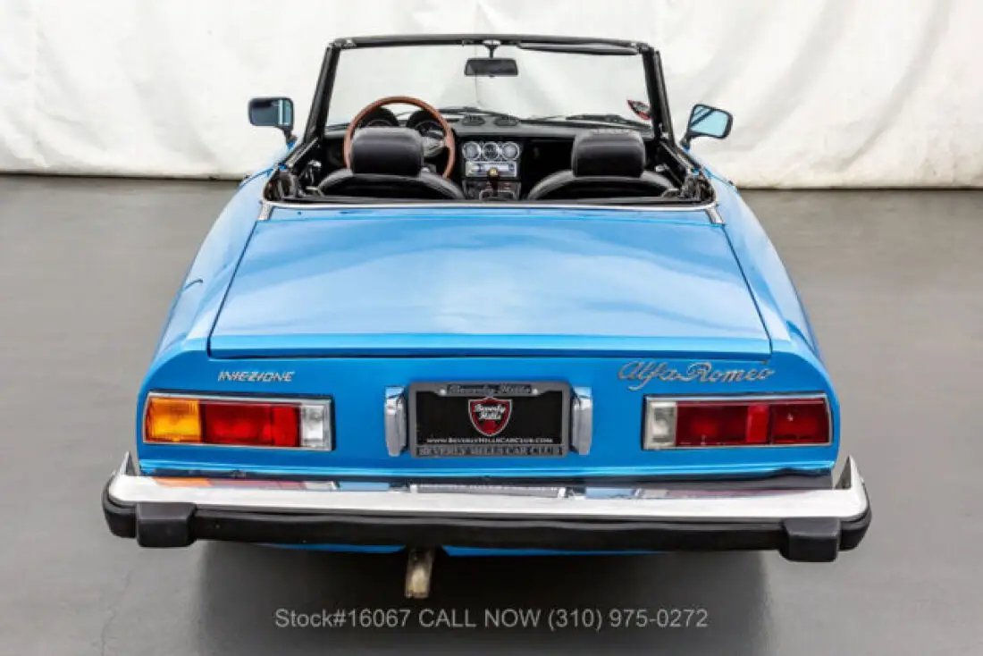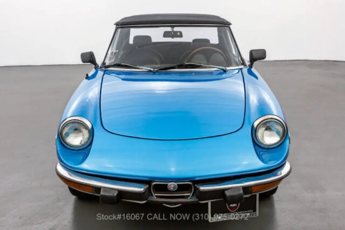 1974 Alfa Romeo 2000 Spider VeloceThis 1974 Alfa Romeo 2000 Spider Veloce is finished in Light Blue combined with a Black interior. Equipped with a manual transmission, fuel-injected inline-four engine, four-wheel disc brakes, single exhaust outlet, Jaeger instruments, black convertible soft top, side marker lights, aluminum door sill plates, three-spoke steering wheel, chrome bumpers with rubber guard, Bridgestone Potenza tires, alloy wheels, and a full-size spare tire fitted in the trunk. Amenities include manual-crank windows, dual-side rearview mirrors, cigar lighter with an ashtray, a glove compartment, and a Panasonic radio. An extremely desirable fuel-injected 2000 Spider that is available in a delightful color combination. For $10,750