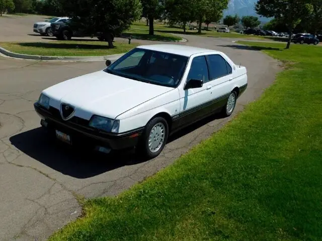 This 1991 Alfa Romeo has its factory color white with a tan leather interior. The Alfa comes equipped with an automatic transmission, 6 Cylinder 3.2-liter engine, air conditioning, power windows, power sunroof, 4-wheel disc brakes, original wheels, jack, spare tire, and a new battery.