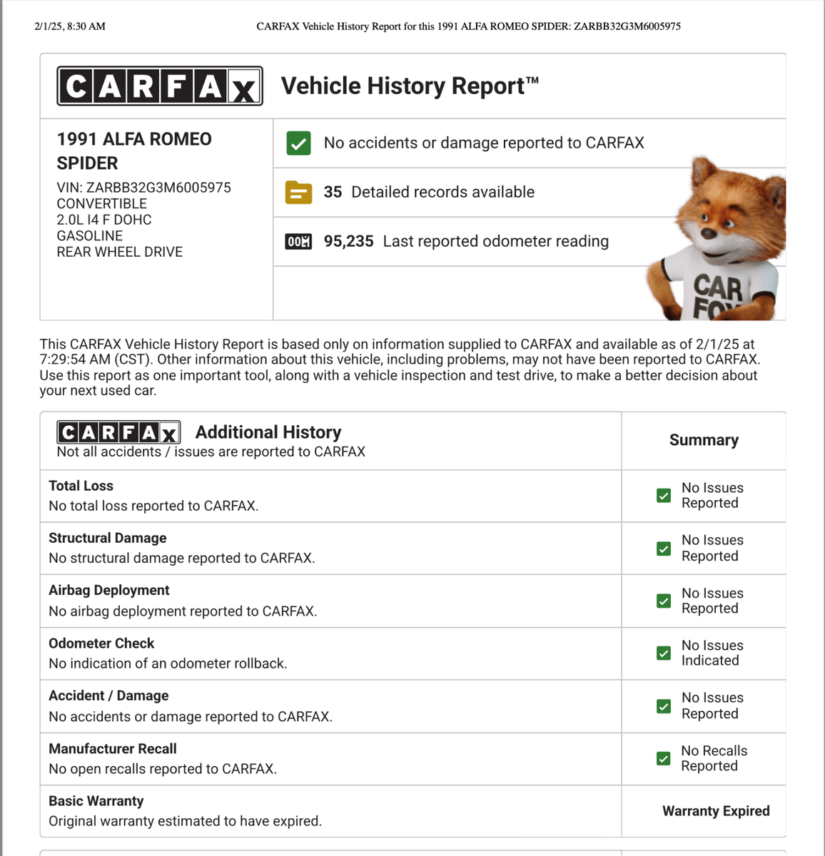 RARE 1991 Alfa Romeo Spider Series 4 (S4) - Original Miles-Clean Title-No Rust