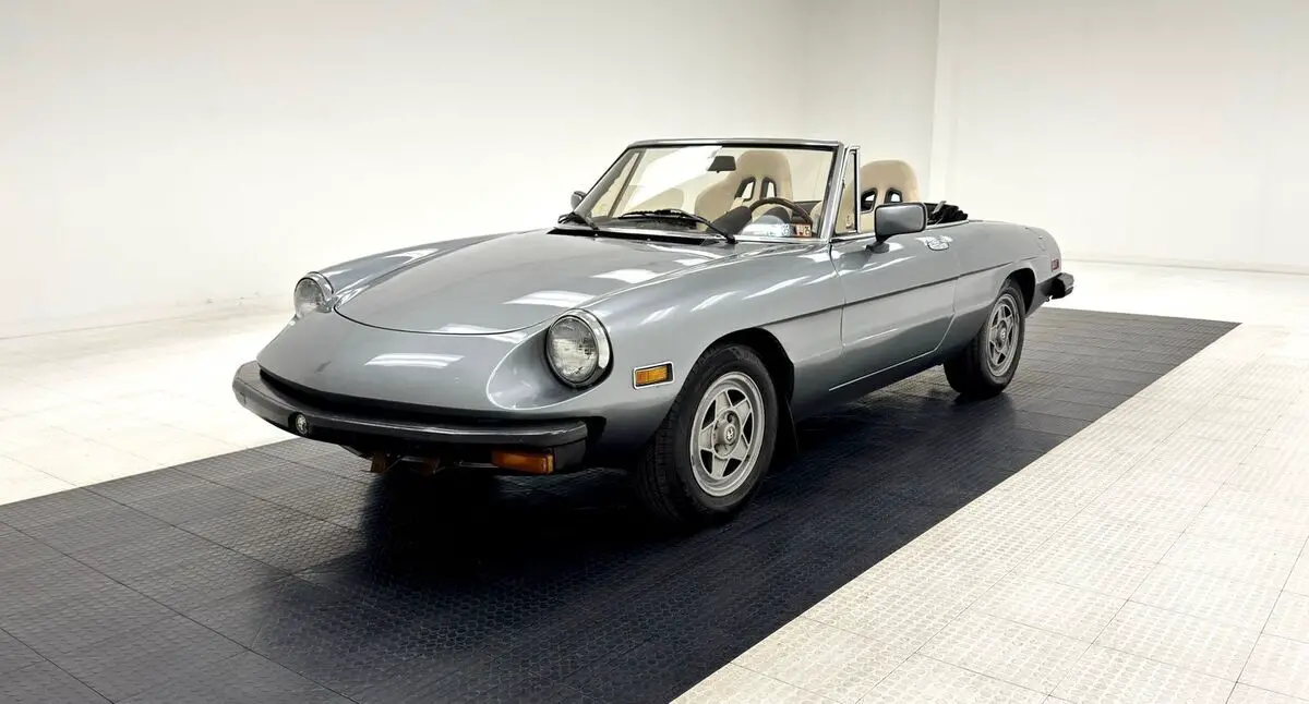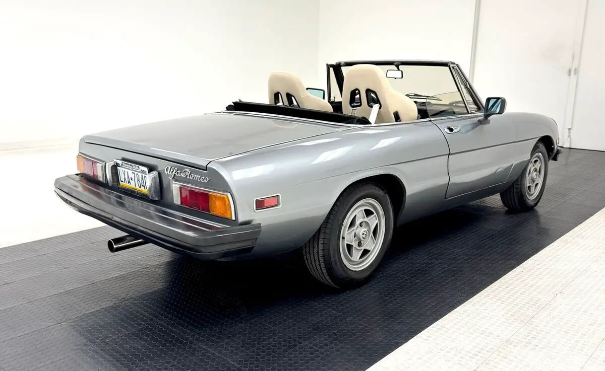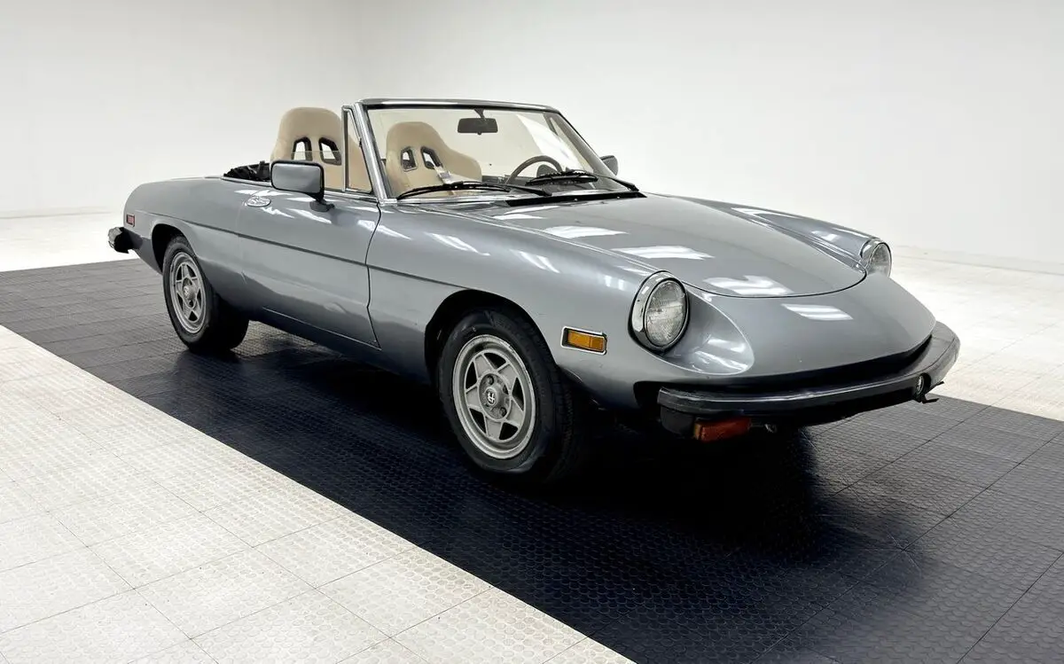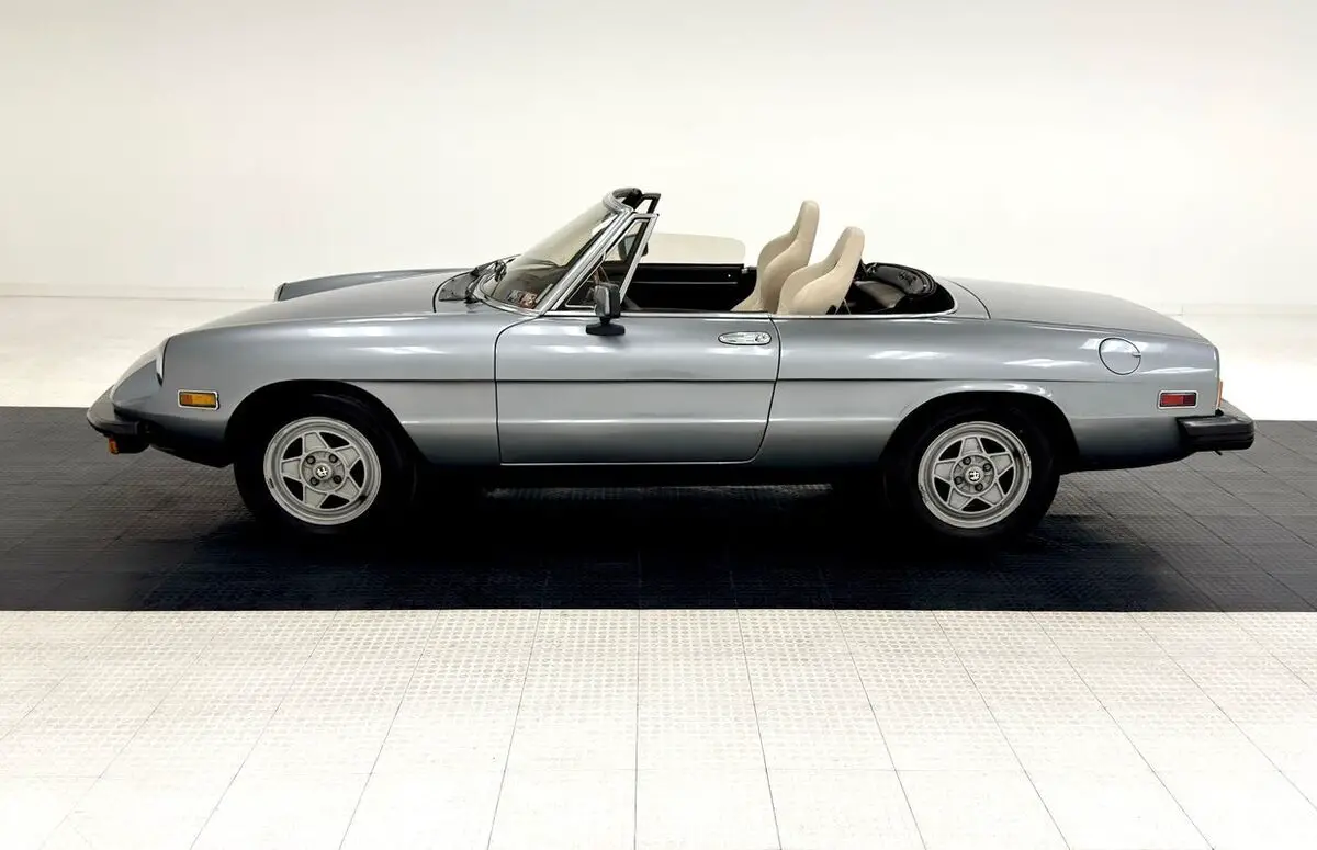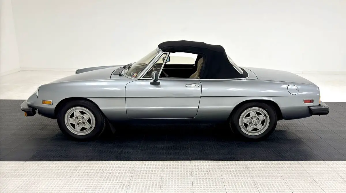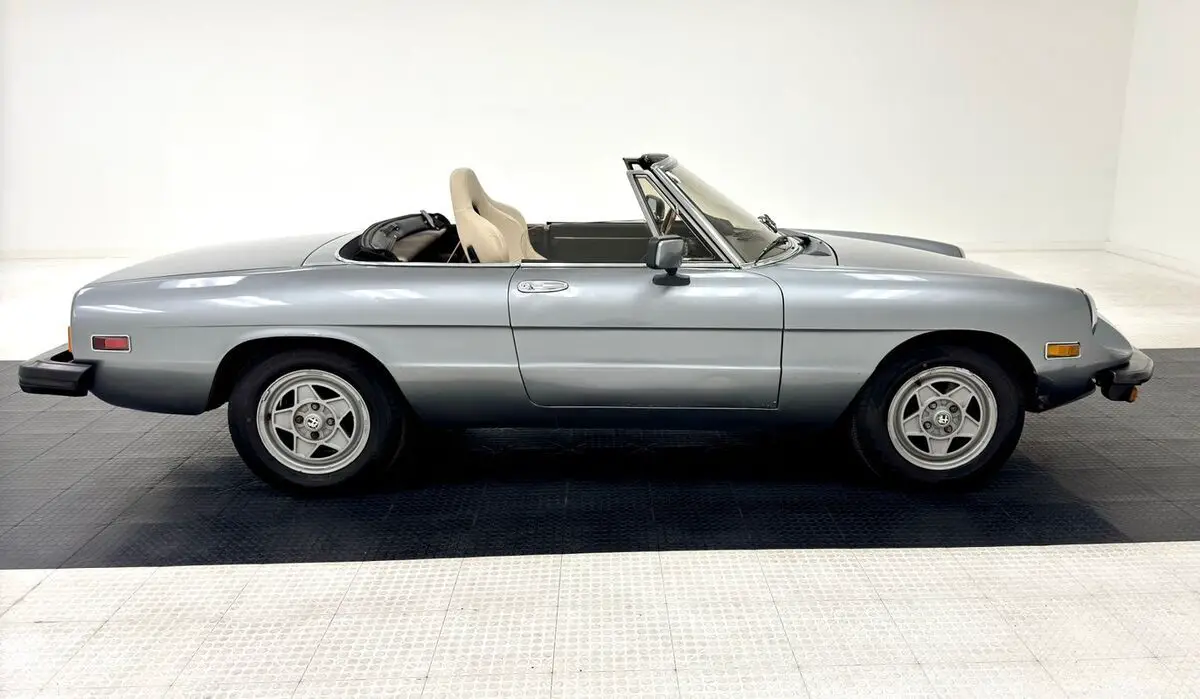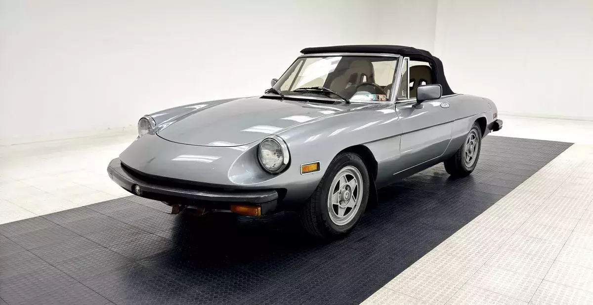 1982 Alfa Romeo Spider For consignment, a 1982 Alfa Romeo Spider showing 14,358 miles which are not actual. With new seats and a Momo steering wheel, the interior has an updated configuration under a classic shell and the car also benefits from a new gas tank, sender, and fuel pump. Exterior This bullet shaped roadster begins with a pointed nose and a hood set far back from the fascia, leaving a smooth panel up front that's not only shaped like a shark, but colored like one too in Silver Metallic. Headlights set back in a cove also cap the arched fenders that set the straight shoulder line that rolls flush with the flat decklid. The rear fascia meets the decklid with a right angle and its vertical presentation includes tri-colored tail lights over a straight bumper and single exhaust tip that's just off center. In profile, the waistline of the car is formed by body lines that connect the 14-inch Alfa wheels wrapped in 185/70R14 tires with a late 2021 date code. The black canvas top is in great shape, while imperfections on the exterior include some scuffs on the nose, numerous bubbling and rust spots, chips on the door edge, the rubber guard peeling from the chrome bumper, various scratches and chips, and cracking paint. Interior Blue leather door cards are neatly constructed with harder surfaces and larger features than you would see historically in sports cars, giving the interior an instant modern feel. That's enhanced by the beige leather racing type bucket seats adorned with custom made seatbelts that thread through one of the harness gaps in the supportive upper. The seats are taller and wider than the originals and surely enhance the driving experience. A wood rimmed Momo steering wheel is up front and fresh, while the black backed dash looks mostly original and clean with deeply coved gauges up front and a series of engine condition dials in the center canted towards the driver. Under that, a Pioneer AM/FM/CD player and then the wood knobbed shifter, almost horizontal in its orientation, are giving way to toggle switches, knobs, and of course, il portacenere, better known as the ashtray in the center. Dark blue carpet floods the floor, somewhat loose in areas, and we find the trunk clean and completely lined in gray cloth paneling. Drivetrain Bright blue ignition wires highlight an otherwise driver quality engine bay housing the 1779cc DOHC inline 4 cylinder producing 116 horsepower, fuel injected and mated to a 5-speed manual transmission sending power to the rear axle and 4.55 gears. Power disc brakes are supplied front and back. Undercarriage Driver quality underneath as well with surface rust and oil on the pan, transmission housing, and surrounding area. A single exhaust flows through a stock style muffler before exiting out back and suspension consists of coil springs up front and swing arms with coil springs in the rear. Drive-Ability The upright windshield provides the movie screen to our test loop adventure, and we put the 116 horses to the test with this classic Italian sports car. The next generation would include the ducktail so it's cool and unusual to have the earlier rendition without it. It's fun to shift the long stick and the car handles like it's on rails, and the fresher tires help! All functions in and around the car work as intended. While Classic Auto Mall represents that these functions were working at the time of our test drive, we cannot guarantee these functions will be working at the time of your purchase. There are British roadsters, Japanese sports cars, and then, there are Italian spiders. No matter which camp you reside in, there's something undeniable about the romantic nature of the Italians. Heck, even the scripted "Alfa Romeo" emblem conjures up thoughts of spirited drives through the vineyards near Monte Amiata or along the Amalfi coast. Here's one you can use as a driver without worrying about scuffs to a pristine show car. Or perhaps you're already thinking about a new coat of paint? Rosso Corsa, anyone? Classic Auto Mall is home to more than 1,000 classic and collectible vehicles for sale via consignment in a climate controlled 336,000-square foot showroom (that's more than 8 acres!). The largest single location consignment dealer of classic and collectible vehicles in the country is located in Morgantown, Pennsylvania, just 1-hour west of Philadelphia off Exit 298 of the I-76 Pennsylvania Turnpike. For more information visit or call us at 855-201-7026. Contact us anytime for more information or to come see the vehicle in person. There is no guarantee of mileage. A $299 Dealer Administrative fee is not included in the advertised price. With so many great cars, you know we have a lot to talk about, and we do that each week on the Classic Auto Mall Podcast with host Stewart Howden. Stewart discusses new inventory as well as trends in consignments and car prices, while interviewing celebrities and automotive professionals about amazing cars and their history. Tune in each week to the Classic Auto Mall Podcast wherever you enjoy listening. You can also watch on YouTube!