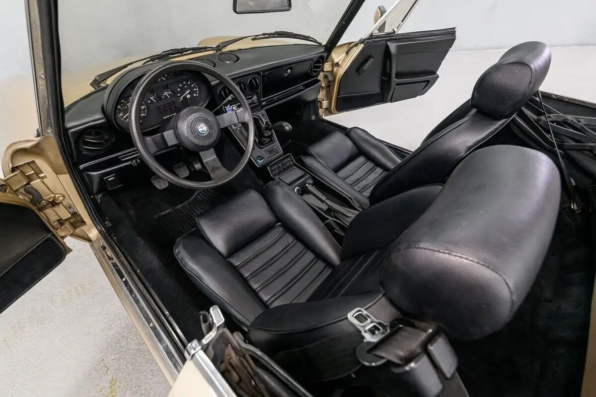 This vintage 1986 Alfa Romeo Spider Veloce roadster has been partially restored to original condition. The exterior has received professional re-spray of Beige Champagne and the finish is in very good condition as is the black manual convertible top. Factory 5-spoke 14" alloys mount Kelly Edge radials. The restored black vinyl interior of this classic is in excellent condition – seats, dash and carpeting are all well maintained. A handsome leather wheel is positioned perfectly in front of a full set of factory gauges and provides a distinctive finishing accent. Air conditioning, power windows and an Alpine AM/FM/CD sound system w/JBL speakers completes the package. The 2,550lb roadster is powered by Alpha's 2.0L DOHC naturally aspired 4-cylinder w/Bosch L-Jetronic indirect-injection that outputs 115bhp-119lb/ft. Backing this sophisticated powerplant is a 5-speed manual transmission and RWD differential with 4.10:1 gearing. Other chassis enhancements include rack-pinion steering and 4-wheel power ventilated disc brakes. A solid AutoCheck report is also included. This elegant Alfa Romeo Spider Veloce roadster is more than ready for you to enjoy. ALL VEHICLES SOLD "AS IS".