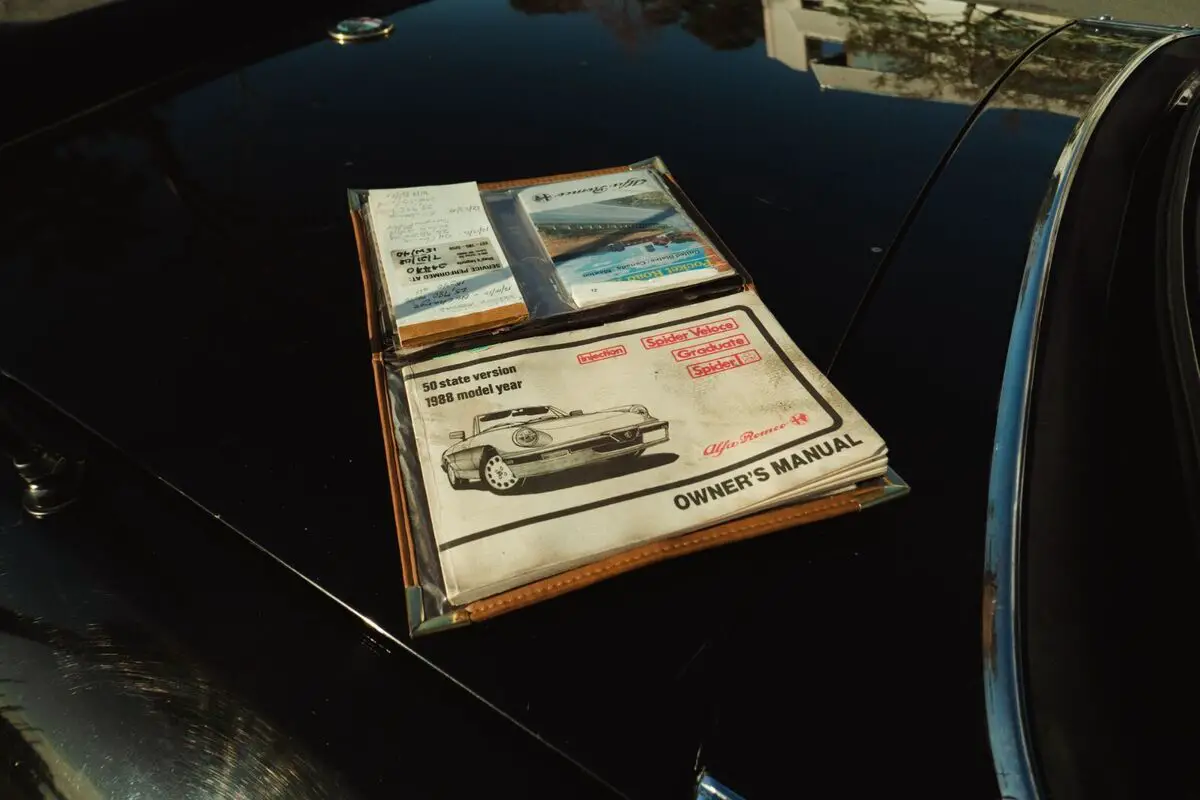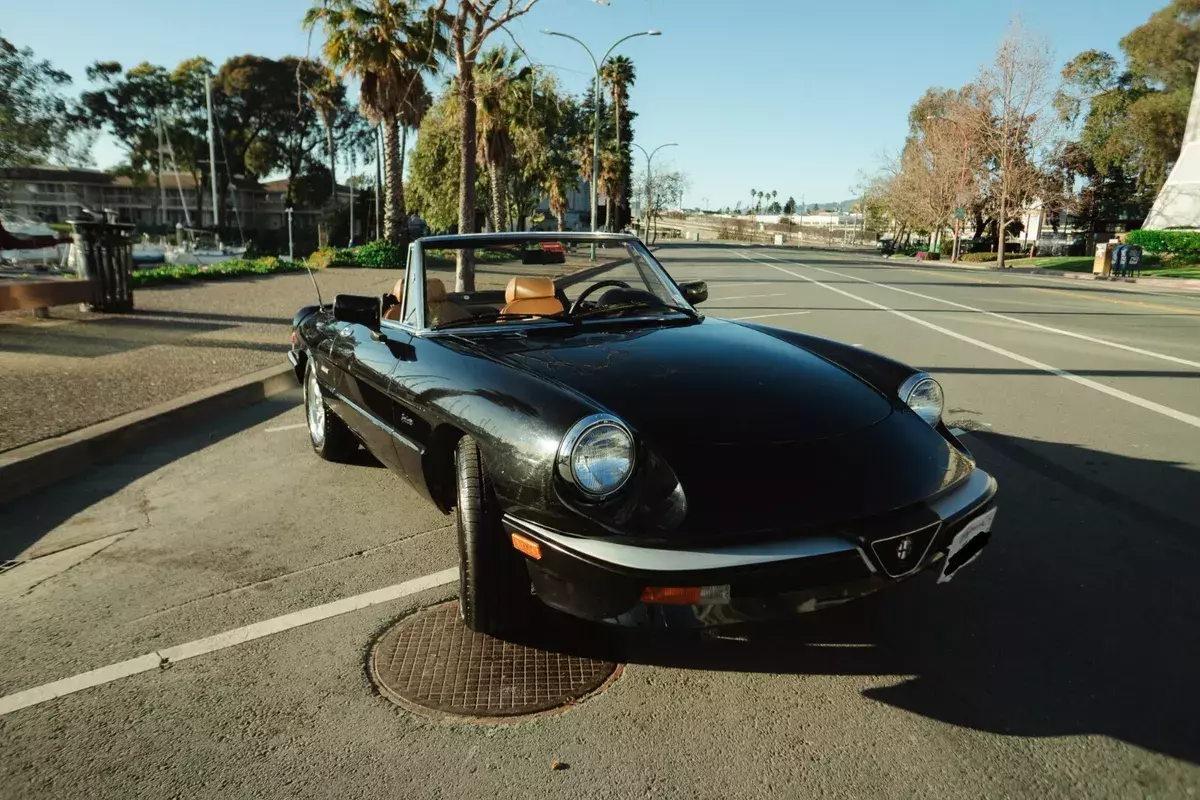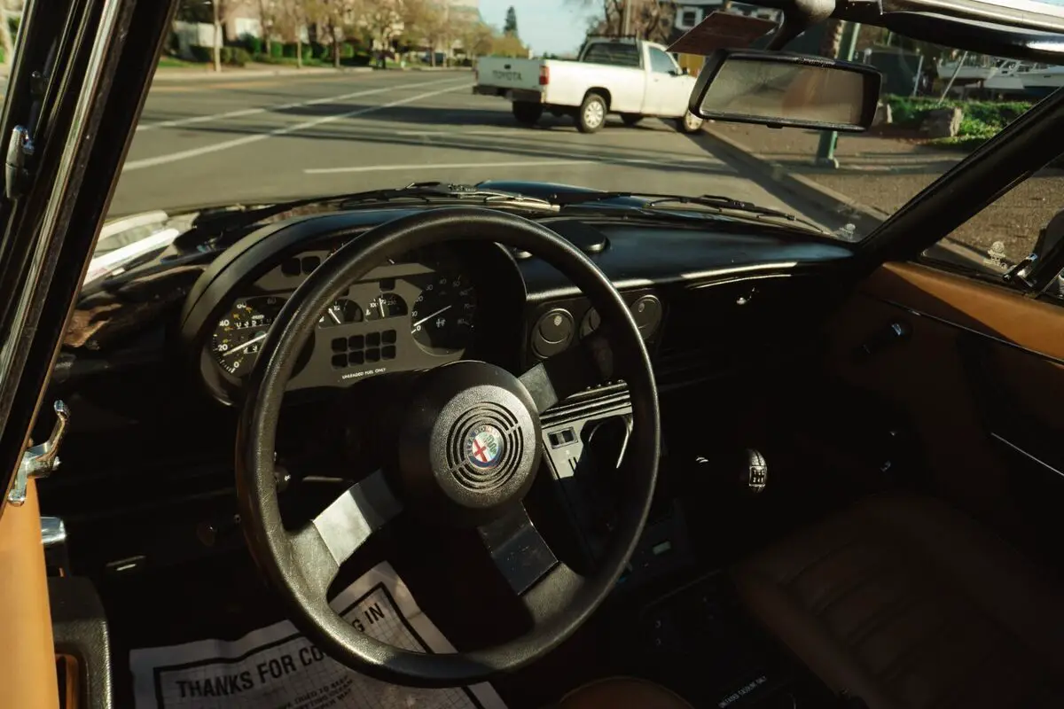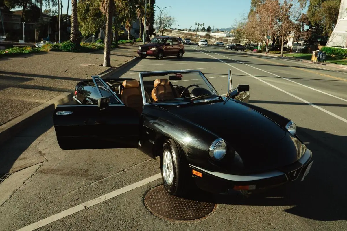 This classic black-on-caramel 1988 Alfa Spider Graduate has just 31,500 miles and has been lovingly maintained by one family since new. It runs beautifully with recent upgrades including new suspension, brakes, alloy wheels, and tires. The interior features rich caramel leather seats and a new RetroSounds radio with Bluetooth for modern convenience.