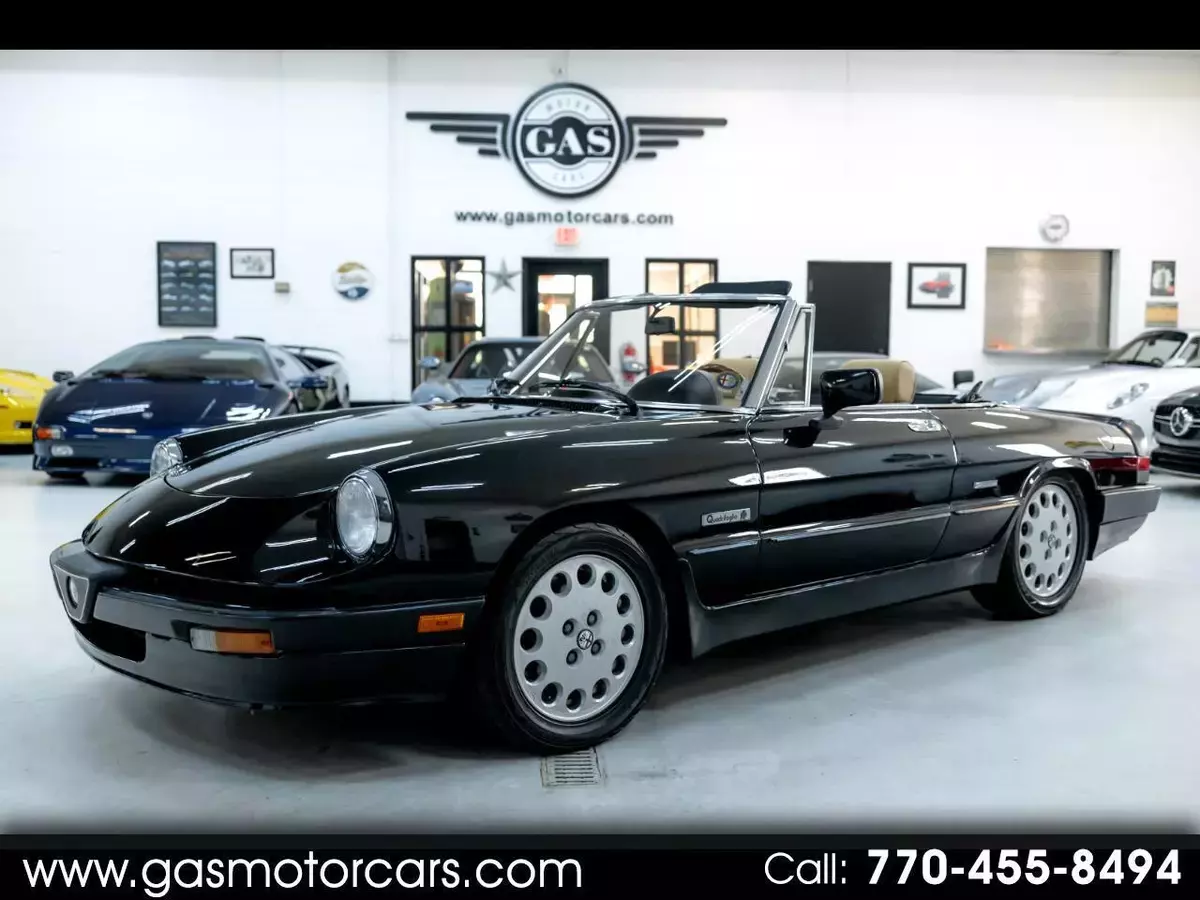 FULL HIGH RESOLUTION PHOTOS AND DETAILED DESCRIPTION ON YOU HAVE A VEHICLE YOU ARE LOOKING TO SELL, PLEASE CALL US AT 770-769-1398WE SHOW VEHICLES BY APPOINTMENT ONLY. PLEASE CALL TO SCHEDULE AN APPOINTMENT IN ORDER TO VIEW A LISTING IN PERSON.NEW ARRIVAL!! PININFARINA-DESIGNED 1987 ALFA ROMEO SPIDER QUADRIFOGLIO!! RUNS AND DRIVES GREAT! COMES WITHOWNERS MANUAL, SERVICE RECORDS, AND CAR COVER.EXTERIOR IS FINISHED IN BLACK WITH ATAN LEATHER INTERIOR.FACTORY OPTIONS AND FEATURES INCLUDE:2.0L TWIN-CAM INLINE-FOUR CYLINDER ENGINEFIVE-SPEED MANUAL TRANSMISSIONLIMITED SLIP DIFFERENTIALREAR SPOILER15 ALLOY WHEELSA/CPOWER WINDOWSBLACK SOFT TOPAND MUCH MORE.GAS MOTORCARS IS A FAMILY OWNED AND OPERATED CAR DEALERSHIP LOCATED IN MARIETTA, GA. WE ONLY SELL VEHICLES OF THE HIGHEST QUALITY. WE SHIP VEHICLES WORLDWIDE AT THE BUYER'S EXPENSE. WE TAKE CONSIGNMENTS AS WELL AS TRADES.WE SHOW VEHICLES BY APPOINTMENT ONLY.PLEASE CALL AHEAD TO SCHEDULE A DATE AND TIME IN ORDER TO VIEW A LISTING IN PERSON.CONNECT WITH US ON INSTAGRAM @GASMOTORCARSIt is the customers sole responsibility to verify the existence and condition of any equipment listed. Neither the dealership nor Dealer Socket is responsible for misprints on prices or equipment. It is the customers sole responsibility to verify the accuracy of the prices with the dealer, including the pricing for all added accessories. Visit Gas Motorcars online at to see more pictures of this vehicle or call us at770-769-1398 today to schedule your test drive.