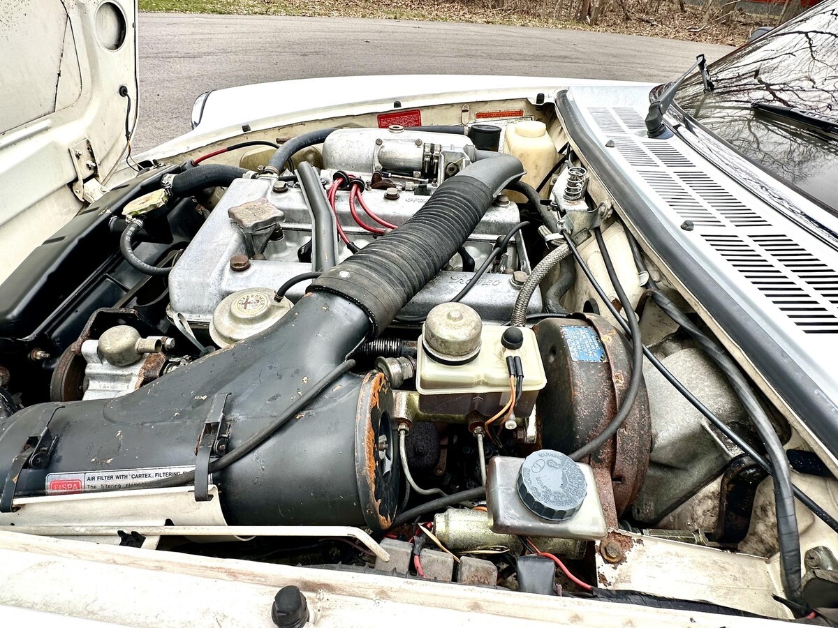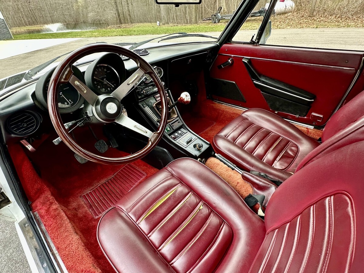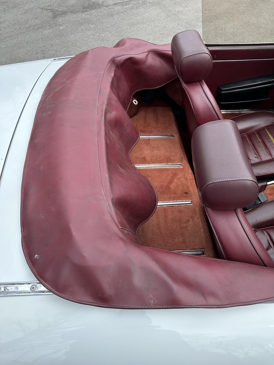 The cabin is original and well-preserved. Seats show some minor seam separation, but overall condition is very good with no foul odors or heavy wear. Carpeting is clean, with some fading on the rear deck. The soft top and rear window are excellent, and the car includes the original red boot cover – though some snaps are missing.