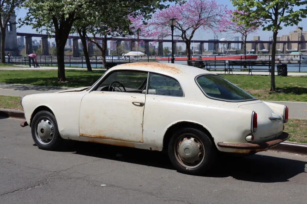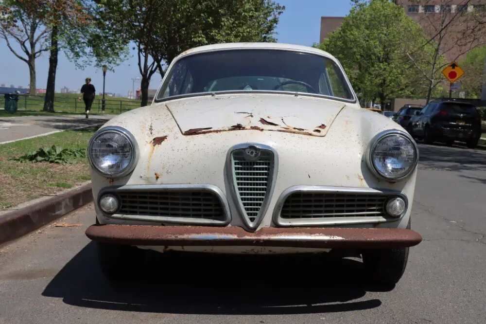 This original unrestored 1957 Alfa Romeo Giulietta Sprint Veloce 750-Series is an extremely rare and exciting discovery that comes with two engines. Its original matching numbers Veloce engine is out but comes included with the car. White with black interior.Nice and straight Bertone coachwork. It's been off the road for several years and is not currently running. An exciting opportunity to be the first to restore a matching numbers car that's nothing but honest. The 750-series Sprint Veloce is very hard to come by and this particular example is the ideal restoration candidate. Alfa Romeo established the small car, big performance formula that would characterize the Milanese marque's finest offerings when they introduced the Bertone-styled Giulietta Sprint in 1954. Alfa's classic twin-cam four was downsized to 1,290 cc for the 750-series Giulietta, gaining an alloy cylinder block in the process. The Giulietta model's success surprised even Alfa Romeo themselves; production targets were revised upwards, and to satisfy demands for increased performance, upgraded Veloce versions of the Sprint were introduced. The combination of a rev-happy engine, fine handling, responsive chassis, and excellent brakes made the Giulietta Sprint a pure driver's car and explains why these stylish Alfa Romeos continue to attract the discerning enthusiast today. Retaining its matching numbers Veloce engine included with the car One of 3,058 Sprint Veloces produced from 1955 to 1962 Desirable 750-Series Rare, Sought-after, and Highly Collectible Sprint Veloce Extremely original and honest car, the ideal candidate for restorationPrice: $26,500