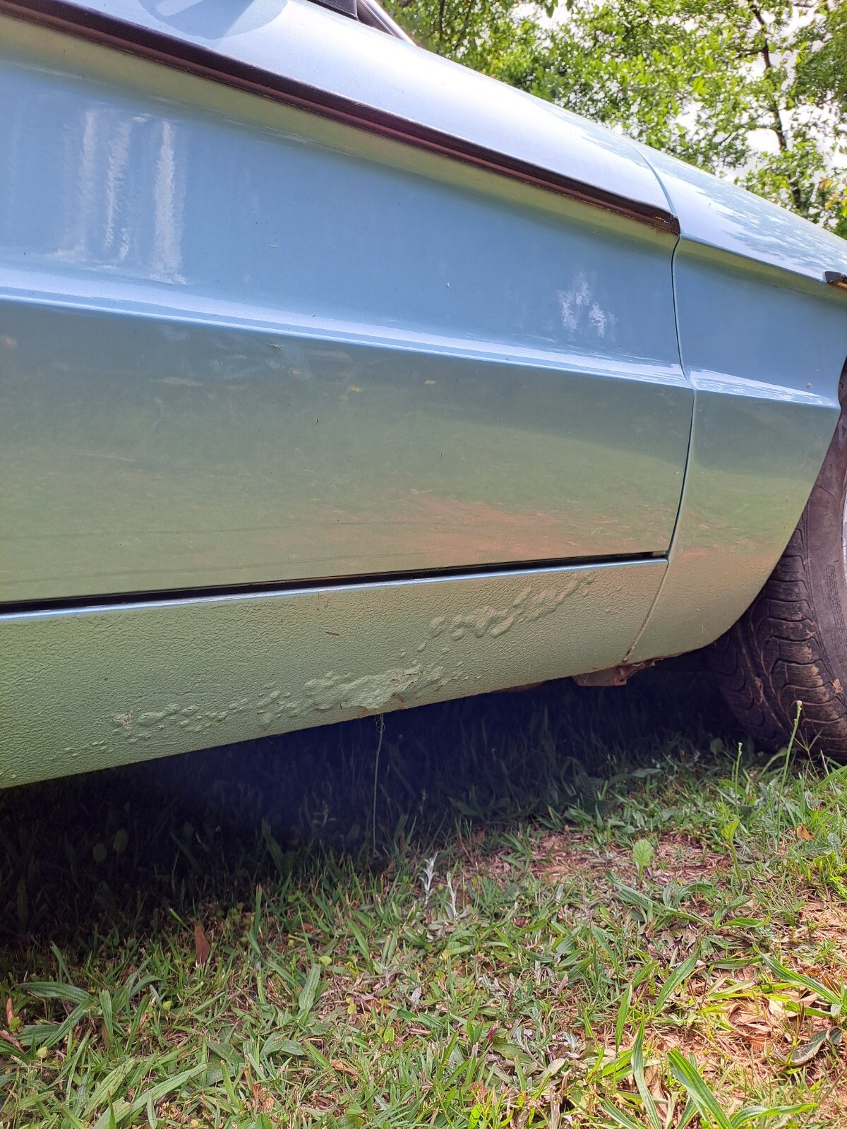 Lower doors show some rust. Rear spoiler is broken and coming off.