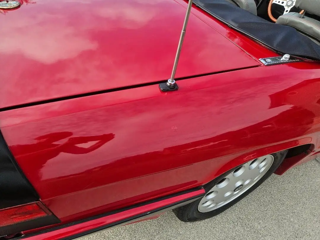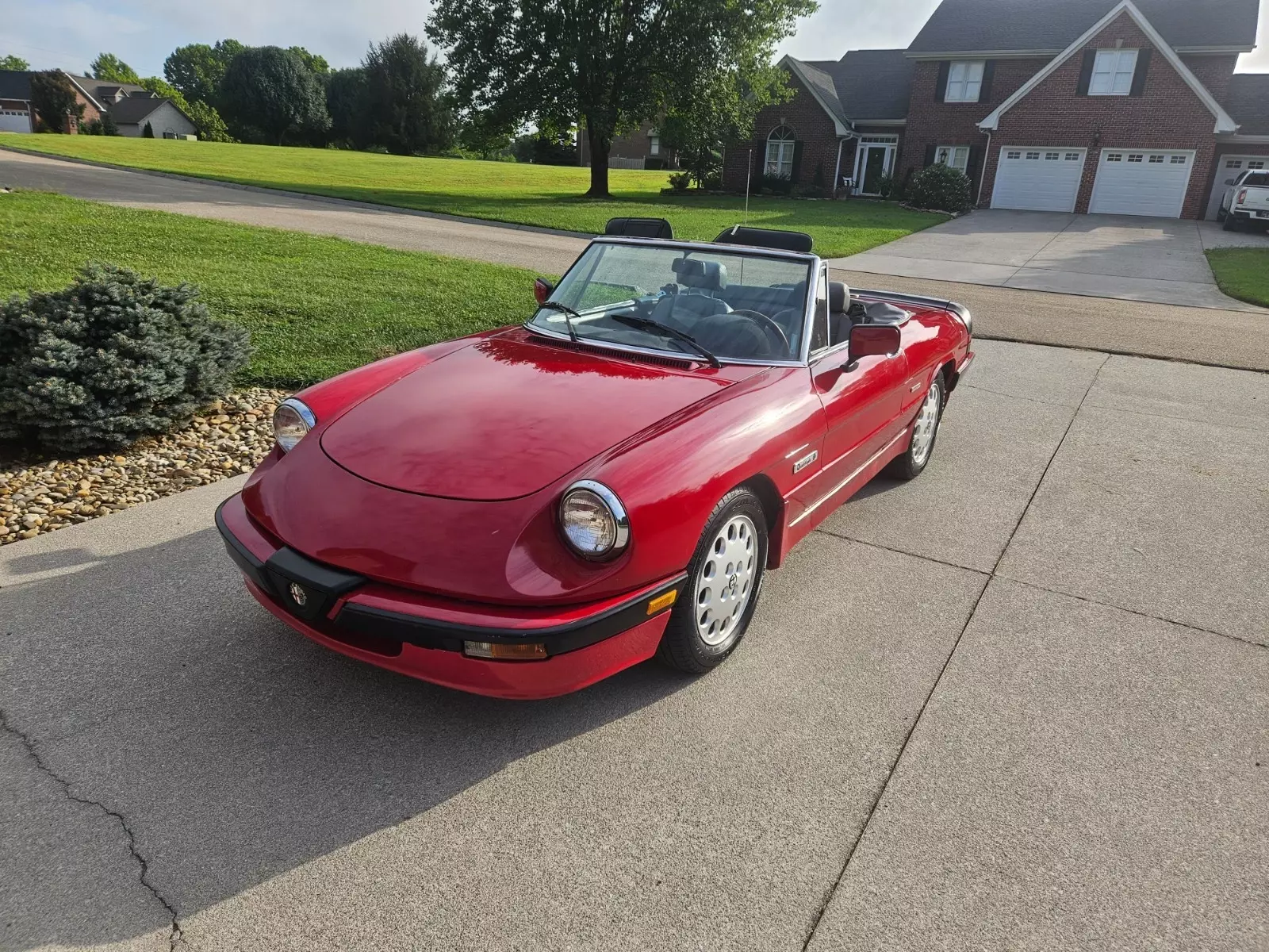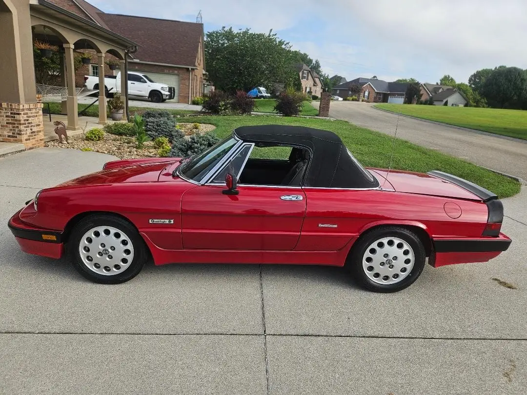 This 1989 Alfa Romeo Spider Quadrifoglia was purchased in 2024 and is registered in Tennessee. Finished in Alfa Red over Slate Gray upholstery, the car is powered by a 2.0 L twin-cam inline-four paired with a five-speed manual transmission. It has 84, 668 miles. Features include a limited slip differential 15" OEM dial wheels, four-wheel disc brakes, a black convertible soft top, black boot/cover for soft top, a removable hardtop, a rear spoiler, bucket seats, Nardi steering wheel, OEM stereo, air conditioning and power windows. This S3 Spider Quadrifoglia is offered with spare parts, spare tire, OEM steering wheel, Sony disc player with FM radio, car cover, service records and a clean TN title.