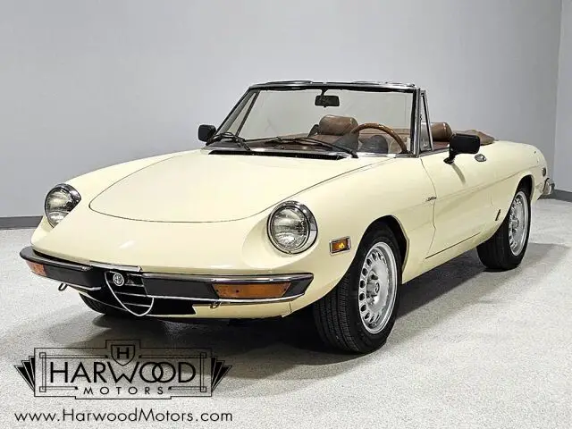 Beautiful Alfa-Romeo Veloce Spider. 45,195 miles indicated. Backdated chrome bumpers, Alfaholics GTA Veloce wheels, upgraded cams, retrofitted Weber carbs. Beautiful color combination. Fantastic two-seater that sings like an Italian is supposed to sing. Every car guy should own an Italian car at some point, and this very pretty 1982 Alfa-Romeo Veloce Spider is an inexpensive way to get some Italian in your life. With just over 45,000 miles, it?s still in fantastic condition and has obviously been treated as something special all its life. Recently, it has been treated to a bit of a makeover using the chrome bumpers from an earlier model to give it an all-new look (or should we say an older look). As a result, it has the look its designers intended, a much cleaner profile that eliminates that heavy, bulky look of the original plastic bumpers. The handsome Ivory paint is a nice change from the usual bright red or white you usually see on these cars, giving it a subtle, sophisticated look. The styling by Pininfarina has aged rather well, and it has a wonderful Italian look with lots of neat details, including those flush-mounted door handles, the traditional Alfa grille up front, and the lovely Alfa Romeo script on the tail. With so few miles, it has never been fully apart but the paint has been touched up here and there, but there?s nothing that stands out as needing attention. In fact, it looks fantastic! Panel gaps are decent (on par with ?80s Italian build quality), the doors close with a nice solid sound, and there?s a great shine to the finish. This is a car you?ll be proud to own. The brown leatherette interior is holding up superbly, a testament to the car?s low mileage and excellent care over the past four decades. A lovely wood-rimmed steering wheel is the highlight of the interior, and in true Italian fashion, you sit a little closer than you?d expect. Big, round Jaeger gauges cover the basics, with auxiliary gauges in the middle. That funky shifter sticking out of the center stack seems odd at first, but feels quite natural in operation, and it snaps through the gears with precision. The stereo has been upgraded, probably in the late ?80s, to a Kenwood AM/FM/cassette unit with speakers in the kick panels, but if you?re listening to the radio in your Italian roadster, you?re doing it wrong. Monogrammed floor mats protect what appear to be the original carpets and the door panels are in amazing condition. The black convertible top is in good condition and is likewise probably original to the car, and it stows easily behind the seats with a matching brown boot. There?s also a good-sized trunk that?s ideal for road trips. The 2.0 liter DOHC inline-4 was originally fuel injected to meet 1980s emissions standards, but the system was complex and tough to service, so the entire setup was replaced by a pair of side-draft Weber carburetors. Webers are the preferred setup on these cars, and they perfectly complement the upgraded cams making for improved performance and a spectacular soundtrack all with less maintenance. The rest is standard Spider equipment, although the later models benefited from a lot of upgrades that the earlier cars did not, so this car represents the best of both worlds. The 5-speed manual shifts cleanly, funky shifter notwithstanding, and there?s a limited slip rear end with 4.10 gears out back, so the car feels lively around town. You?ll note that it?s quite clean underneath (nobody is using one of these as a winter car), and all of the structural areas are totally solid. The springs and shocks have been upgraded to sharpen the handling a bit and 4-wheel disc brakes were standard equipment. The exhaust system sounds heroic at full bore, and it sits on a set of 15-inch Alfaholics Veloce GTA aluminum wheels with right-sized 195/60/15 performance radials all around. Documentation is extensive, including original owner?s manuals, a copy of the window sticker, factory service manuals, marketing materials, and a few decades? worth of service receipts. Italian cars are just special. They feel different, as if they were built solely for the joy of driving. This Alfa Romeo is proof that they don?t have to be expensive, and this wonderful little roadster delivers the same wonderful experience as its more expensive counterparts. Find out why Italian cars are so cherished, give us a call today!