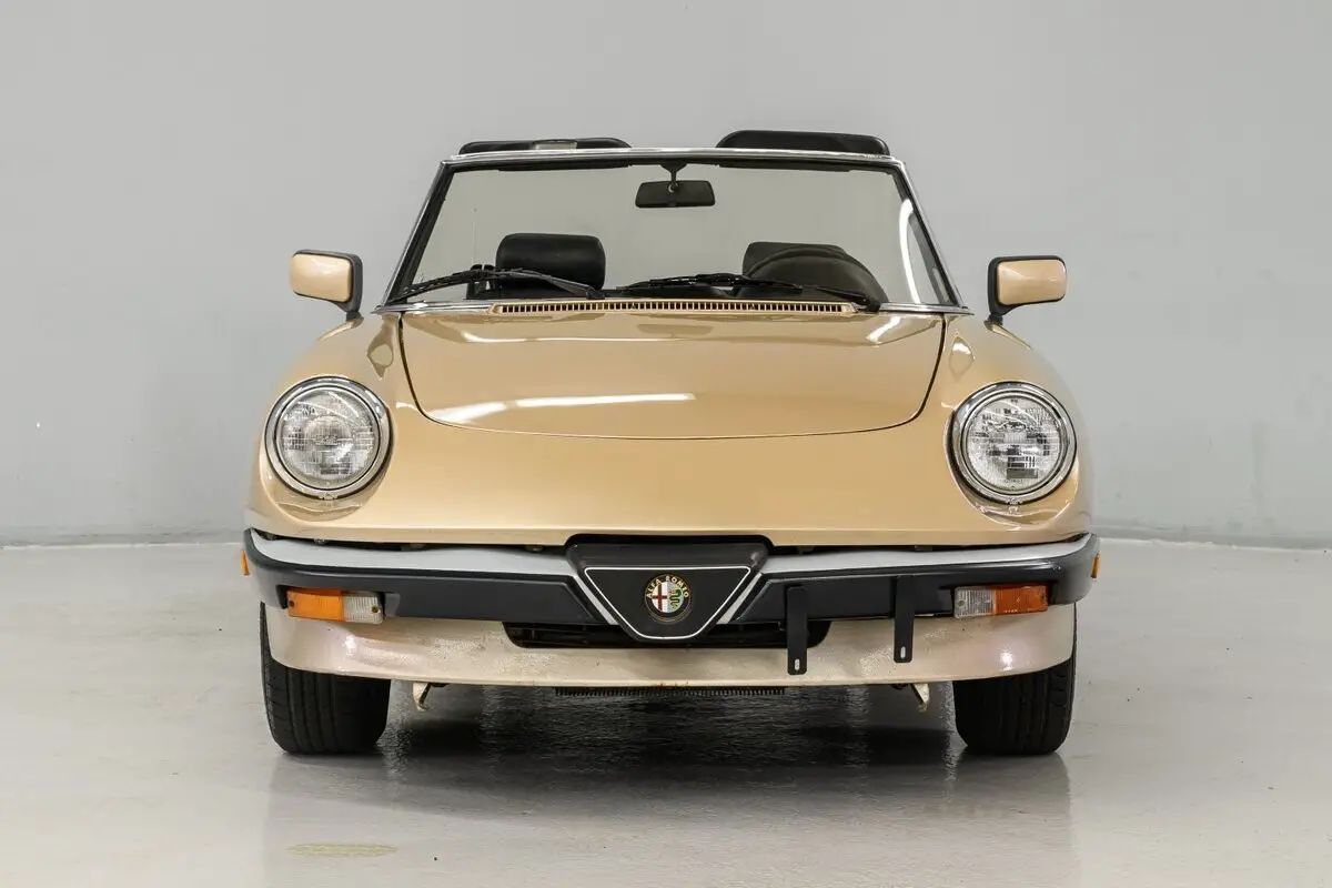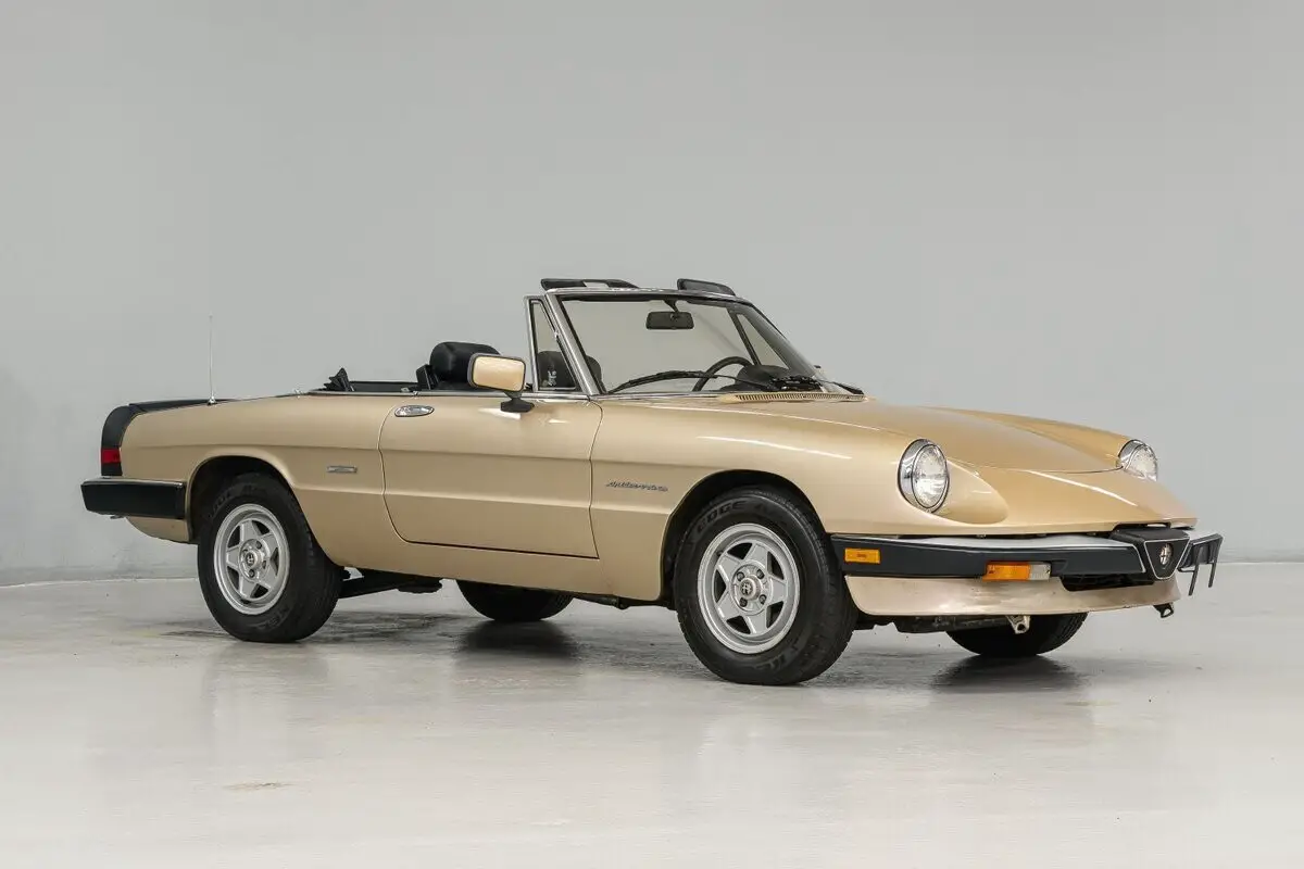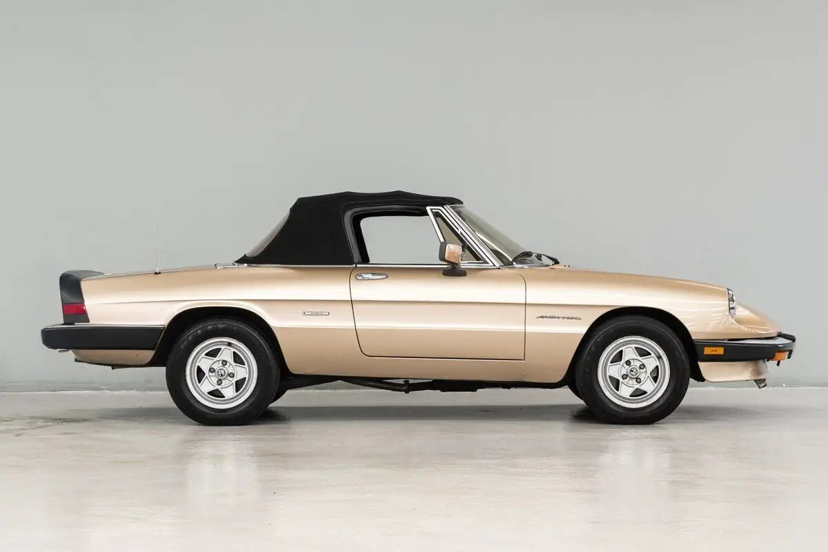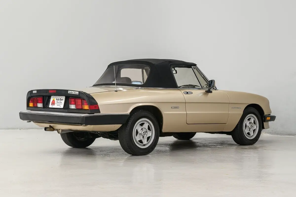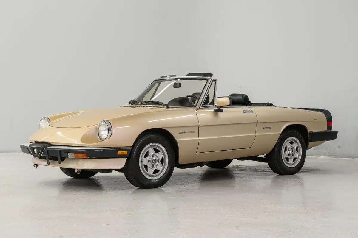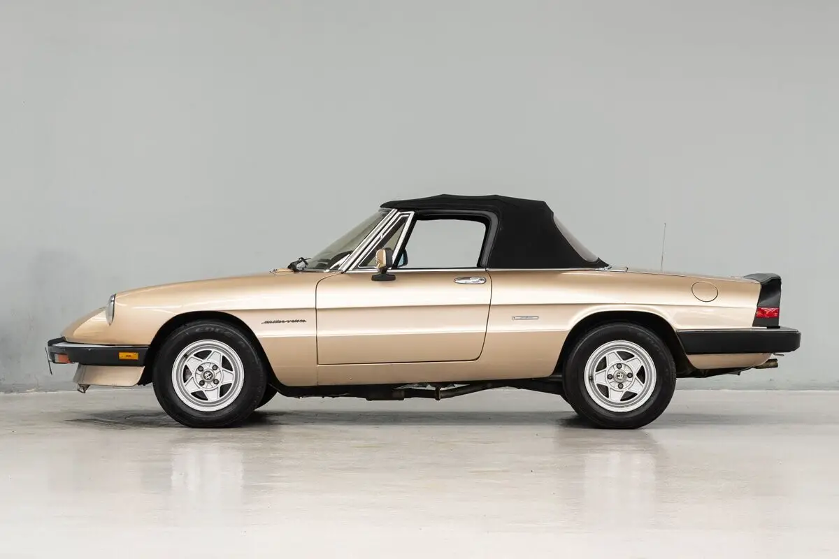 This vintage 1986 Alfa Romeo Spider Veloce roadster has been partially restored to original condition. The exterior has received professional re-spray of Beige Champagne, and the finish is in very good condition as is the black manual convertible top. Factory 5-spoke 14" alloys mount Kelly Edge radials.