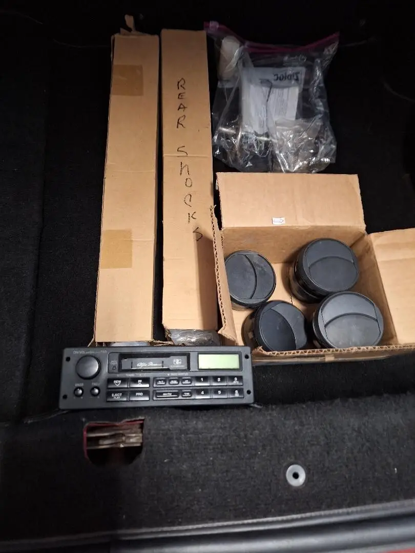 I am selling my car collection due to health issues. When I bought the alfa, it had just come out of a 10yr long storage. The following services were performed: 1] Fuel tank removed and flushed. New fuel pump, filter and fuel line. 2]New tires all around. 3] New A/C lines, dryer, compressor oil and system flushed. 4] Rebuilt frt suspension, new frt and rear shocks. Rear shocks have to be installed 5] New 7" Bluetooth radio and speakers. New 2200-watt amplifier. I have the original working radio, and it will go with the car. 6] New brake master cylinder,calipers,and brake lines. Silicone brake fluid ONLY. 7]New clutch master cylinder and slave cylinder. Silicone brake fluid ONLY.