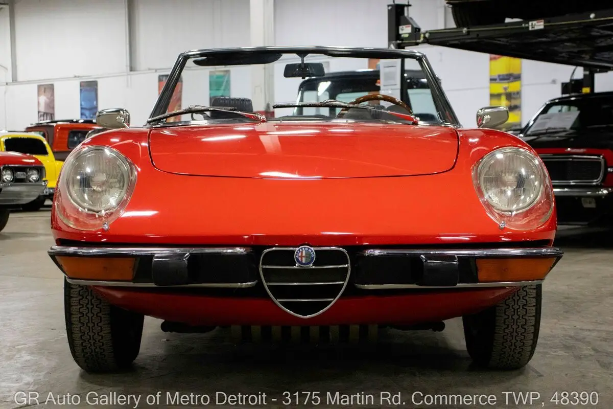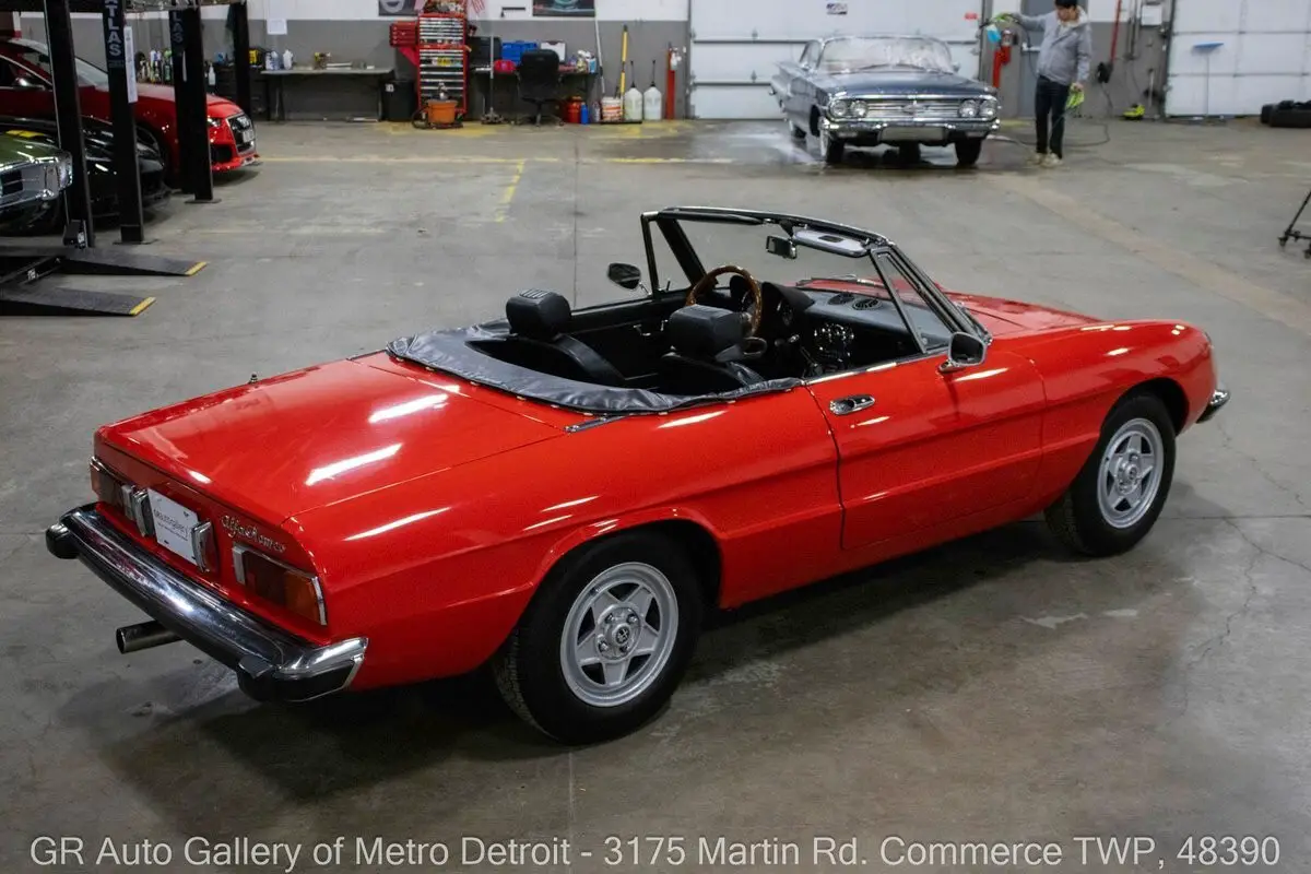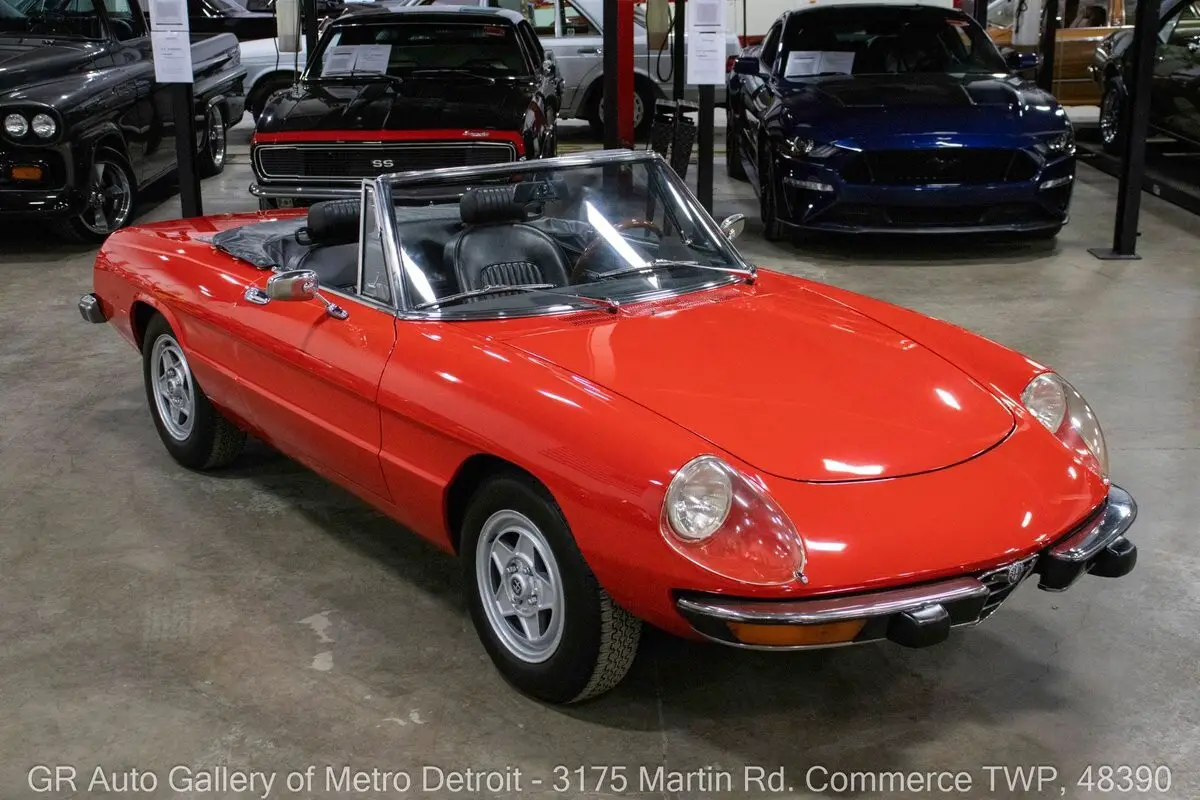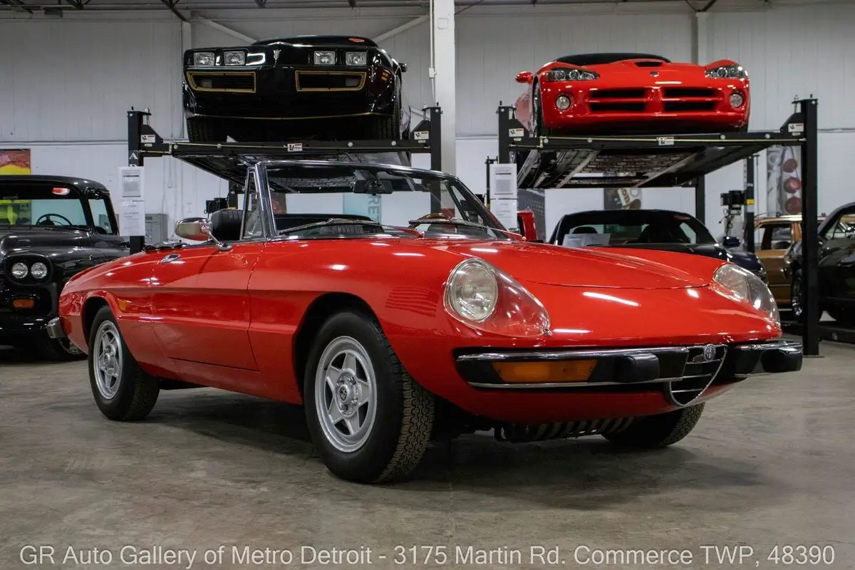 GR Auto Gallery is pleased to present this beautifully restored 1975 Alfa Romeo Spider Veloce for your consideration. Finished in classic Alfa Romeo Red over a clean Black interior, this Spider has been meticulously cared for and tastefully updated. Powering the vehicle is a 2.0L inline 4-cylinder engine paired with a 5-speed manual transmission, offering an engaging driving experience. The engine was rebuilt in 2020 and has approximately 7,000 miles since completion, complemented by fresh paint completed the same year. Recent updates include new rubber body seals around windows, doors, trunk, and top, freshly powder-coated wheels, new three-point retractable seat belts, and new Pirelli period-correct Cinturato CA67 tires. The interior has been refreshed with new carpeting throughout, including the trunk with insulated flooring and spring-loaded fasteners, along with a restored dash, console, and door panels. Additional highlights include a carpeted storage bin in place of the rear shelf, Blaupunkt Turin radio, Powerbass Extreme XL850 400-watt RMS sound bar, Koito H4 headlamps with Tungsram H4 bulbs, LED lighting in all gauges and warning lights, new headlight and fan switches, manual convertible top, new tonneau cover, headlamp covers, chrome bumpers, wood trim steering wheel, and a new battery. Side marker lights have been removed for a cleaner look, and the original rubber flooring is included. The vehicle has also received fresh oil changes and a replaced clutch master cylinder. Drive this one out of our showroom or have us assist with shipping it to you anywhere in the United States! Don't hesitate to call us with any questions or for more information.