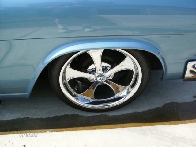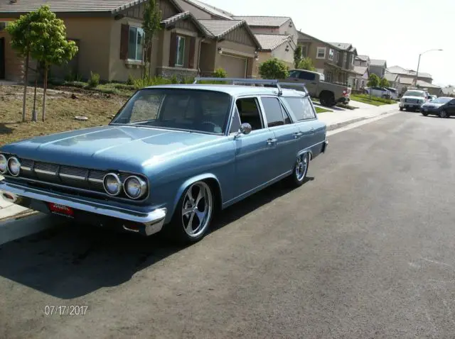 For sale is my 1965 Rambler Classic 770 WagonHas a SBC 327 bored .30 over with a mild cam, aluminum riser manifold, elec. ignition, power steering'Has a 700R-4 auto tranny with a shift kit and a B&M shift.Rides low on new 18" Riddler chrome rims on new Firestone Firehawk low profile tires with less than 500 miles on them. lightsBody is laser straight and painted a beautiful metallic blue with no waves, scratches, chips, or dents.Interior is a combo of ostrich and vinyl, no tears or rips.Has underbody remote controlled lights with many patterns.