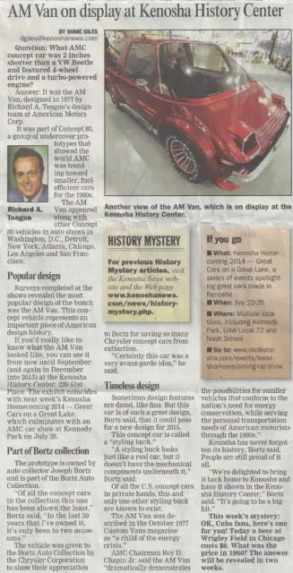 The following paragraph is an excerpt from the American Motors press release of 1977 for the Concept 80’s. The AM Van which had emerged as the most popular design among the six proposed designs in that series which were being presented to the AMC executives.