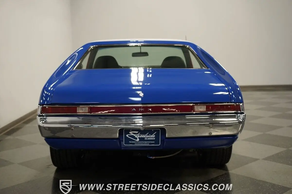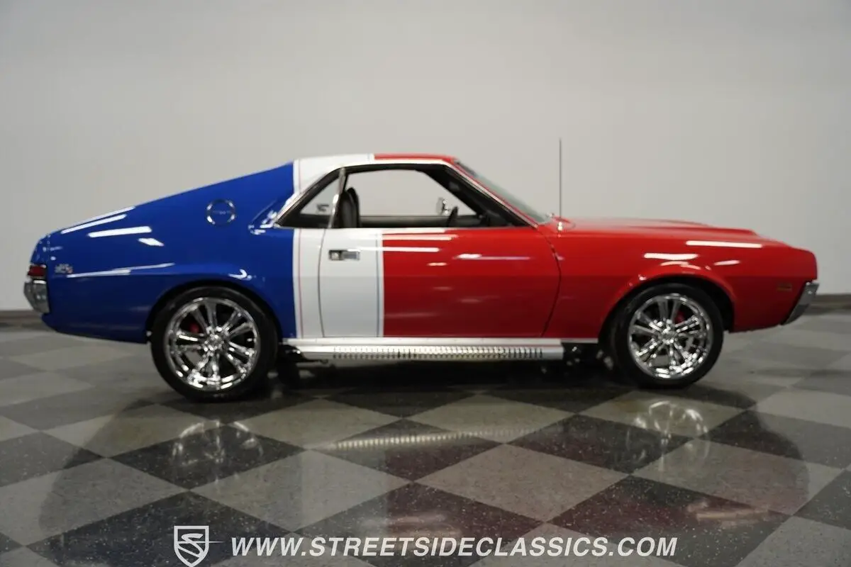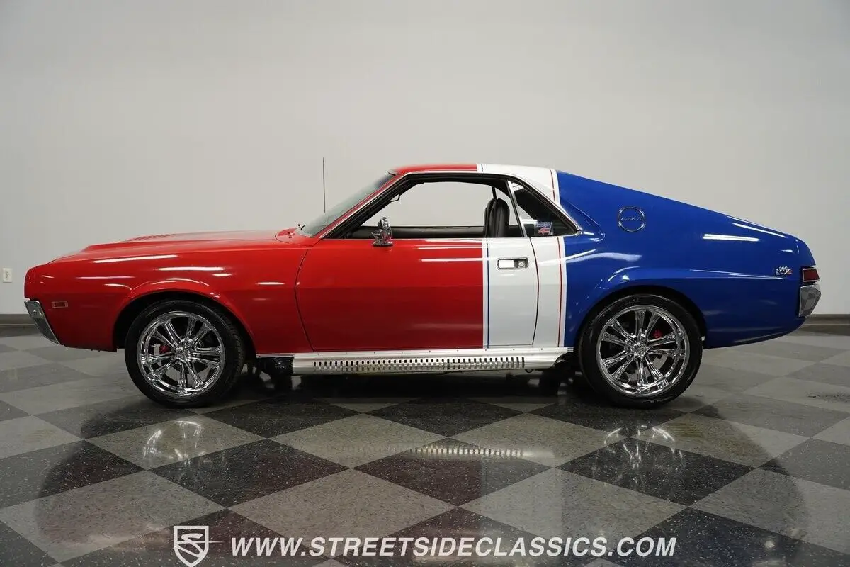 Vehicle Original VIN : A8C397X2504754047-PHX 1968 AMC AMX Born in AMC's first year of AMX production, this 1968 AMX rocks the company's signature racing livery in red, white, and blue with pinstripes slicing through the white section. The aggressive two-door profile gets an extra kick from cool sidepipe exhausts. The stance achieves pure muscle car perfection through a staggered combination of 17-inch front and 18-inch chrome Foose wheels wrapped in 215/45R17 front and 285/35R18 rear performance tires. The black vinyl interior delivers pure performance-focused minimalism. Bucket seats with perforated inserts anchor the cabin, while a B&M ratchet shifter and a compact wood steering wheel put total control at hand. Three auxiliary gauges mounted in the center dash provide vital information, while a vintage-style AM/FM/AUX stereo adds modern audio capabilities. The center console houses the fuel pump, ignition, and radiator fan controls. The desireable 390 V8 powerplant runs through a 3-speed automatic transmission featuring a Gear Vendors overdrive unit. Performance upgrades include an Edelbrock high-rise aluminum intake, Performer 401 heads, HEI ignition, and a Quick Fuel 4-barrel carburetor. The drivability benefits from Wilwood disc brakes with slotted and drilled rotors, a CPP steering box, and Caltracs bars on the AMC 20 rear axle. An aluminum radiator with dual electric fans work to keep temperatures in check. HIGHLIGHTS: • 390 V8 Engine • 3-Speed Automatic Transmission with Gear Vendors Overdrive • Quick Fuel 4-Barrel Carburetor • Edelbrock High-Rise Aluminum Intake • Edelbrock Performer 401 Heads • HEI Ignition System • CPP Steering Box • Edelbrock Headers • Aluminum Radiator with Dual Electric Fans • Wilwood Disc Brakes with Slotted/Drilled Rotors • AMC 20 Rear Axle • Caltracs Bars • Side-Exit Exhaust with Glasspack Style Mufflers • Red, White, and Blue Paint with Pinstripes • 17-inch Front and 18-inch Rear Chrome Foose Wheels • 215/45R17 Front, 285/35R18 Rear Tires • Side-Exit Exhaust Pipes • Black Vinyl Interior with Bucket Seats • B&M Ratchet Shifter • Wood Steering Wheel • Three Auxiliary Gauges • Vintage-Style AM/FM/AUX Stereo • Power Steering • Custom Console-Mounted Controls This 1968 AMC AMX combines raw American muscle with race-inspired styling, upgraded performance components, and a driver-oriented interior. With its potent 390 V8 and distinctive tri-color scheme, this two-seat muscle car represents pure American performance. Call today!