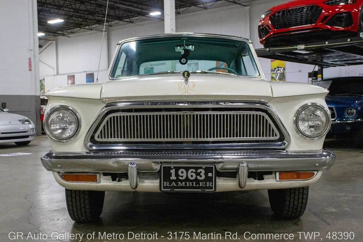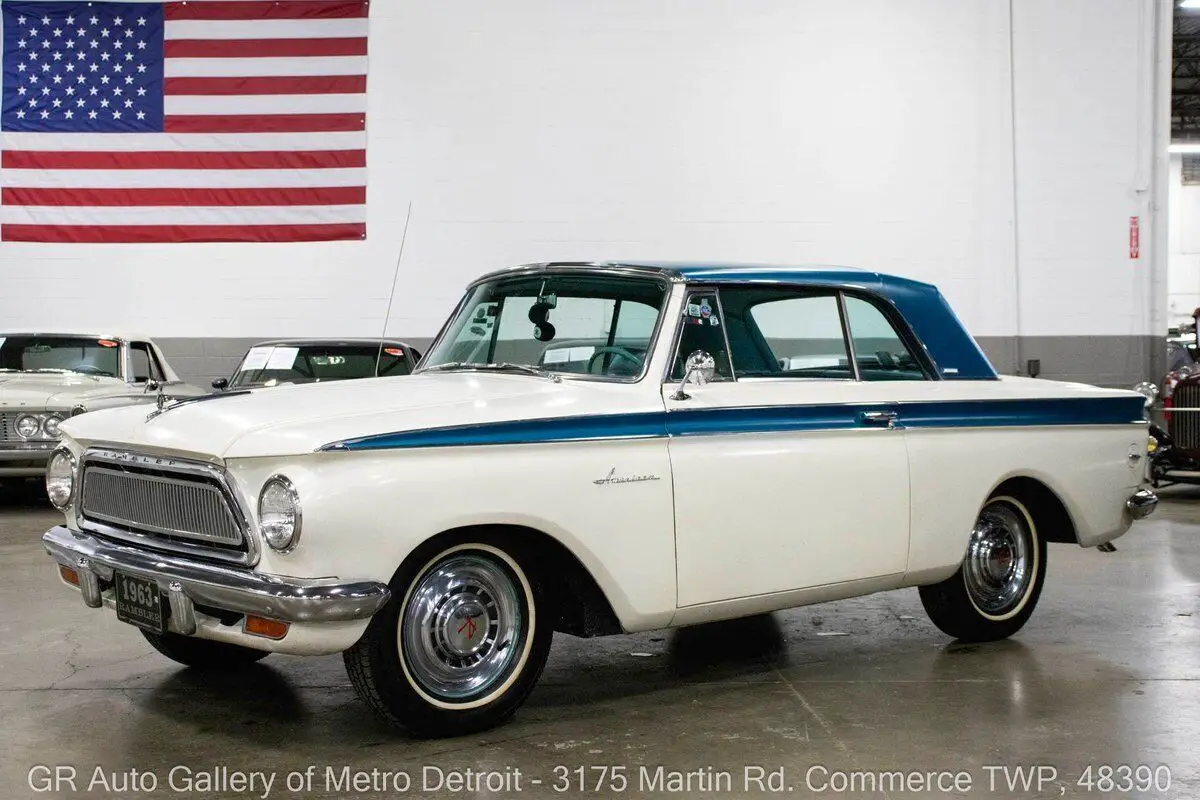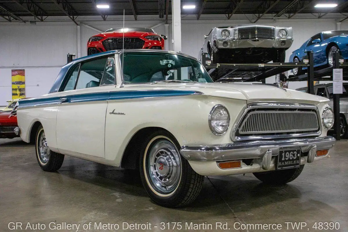 Vehicle Original VIN : B542804• This vehicle is located at our Metro Detroit facility - 3175 Martin Rd, Commerce Twp, MI 48390 • GR Auto Gallery is pleased to present this well-cared-for 1963 AMC Rambler American 440H for your consideration. This classic comes equipped with a spirited 195 cubic inch straight-six engine paired with a smooth 3-speed manual transmission featuring overdrive, Paired with a White exterior, and Blue interior. It boasts numerous enhancements, including leather bucket seats for comfort, newer white wall tires for that timeless look, a new radiator, and fresh brakes for safe stops. Additional features include a new battery, a full-size spare tire, and jack, a spacious trunk for storage, an aftermarket RPM gauge for monitoring performance, and the iconic Weather Eye select. The motor has been refreshed and painted, adding to its overall appeal. Drive this one out of our showroom or have us assist with shipping it to you anywhere in the United States! Don't hesitate to call us with any questions or for more information. The AMC Rambler American was a compact car produced by American Motors Corporation (AMC) from 1962 to 1969. Notable for its distinctive styling and practicality, the Rambler American quickly gained popularity among consumers looking for an efficient yet stylish vehicle. The 1963 model year brought some aesthetic updates and improvements, further solidifying its place in automotive history as a reliable choice for families and individuals alike. With its unique blend of character and functionality, the Rambler American remains an enduring classic in the automotive world. To see over 80 photos of this car, including the undercarriage, please visit our website