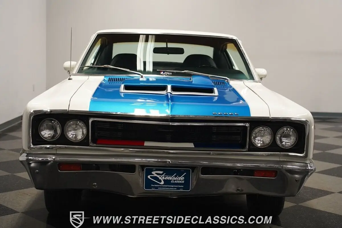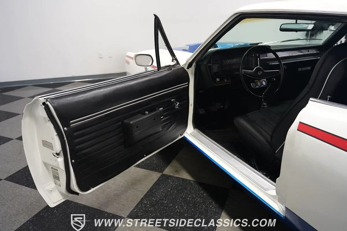 Vehicle Original VIN : A0M190Y187170HIGHLIGHTS: • 390 V8 Engine • Borg Warner Super T10 4-Speed Manual Transmission • Edelbrock 4-Barrel Carburetor • Power Front Disc Brakes • Triangulated Four-Link Rear Suspension with Sway Bar • Dual Exhaust • Aluminum Radiator • Frost White Paint with Electric Blue Accents • Red Racing Stripes • Functional Ram-Air Hood • 15-inch Machine Wheels in P215/65R15 Radial Tires • Hood-Mounted Tachometer • Charcoal Black Interior • Vinyl Bucket Seats • Floor-Mounted Shifter • Power Steering • AM Radio • One of 2,326 Produced
