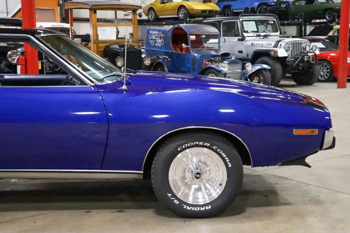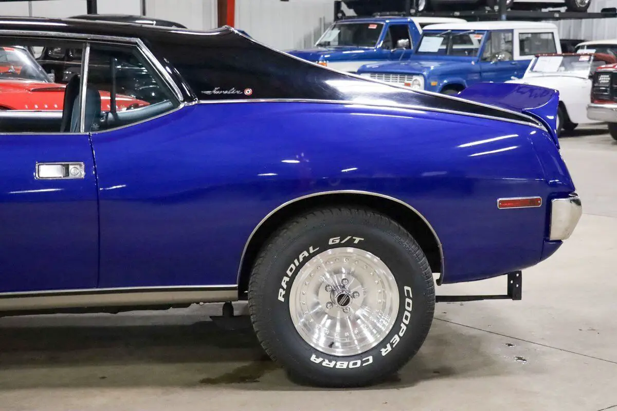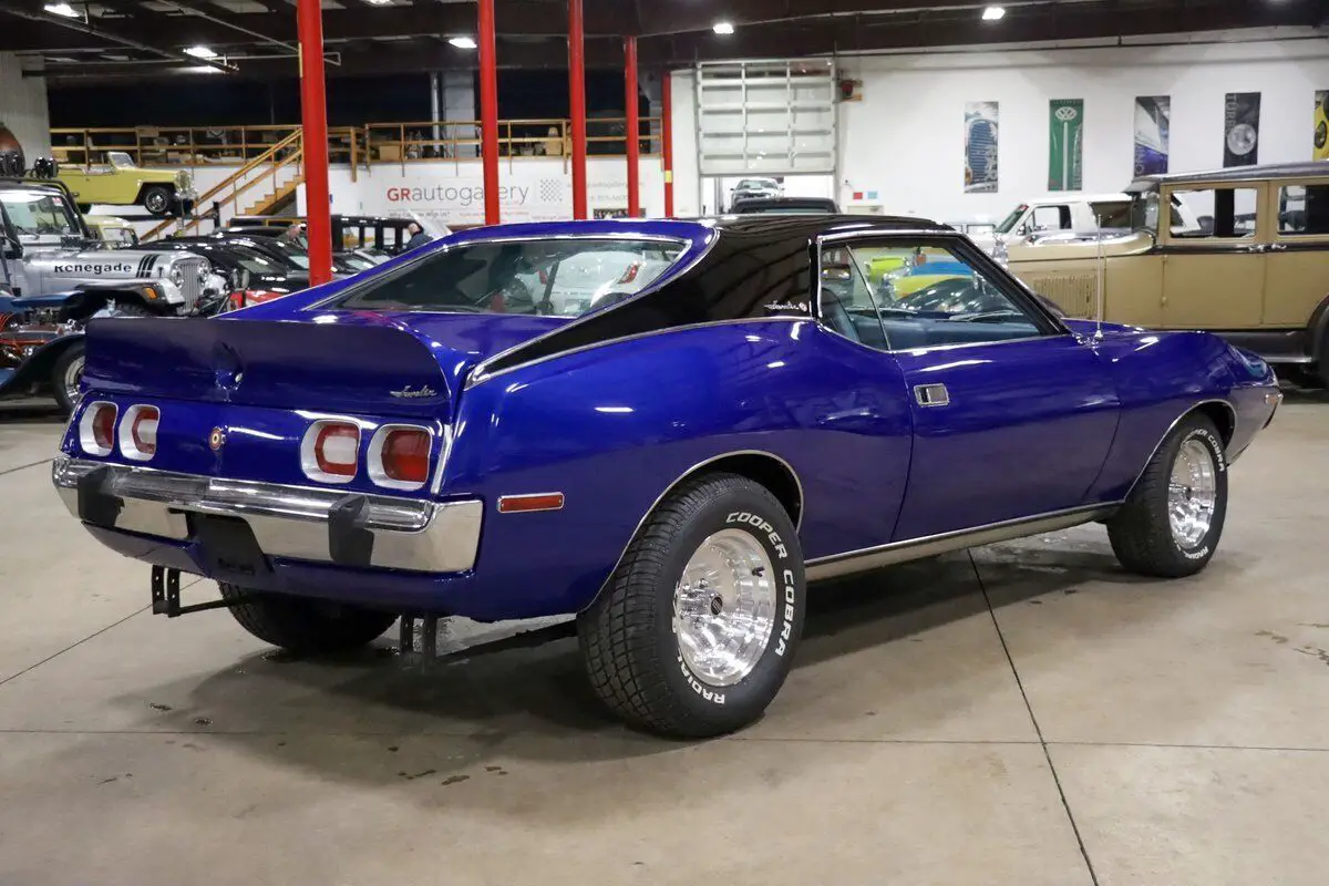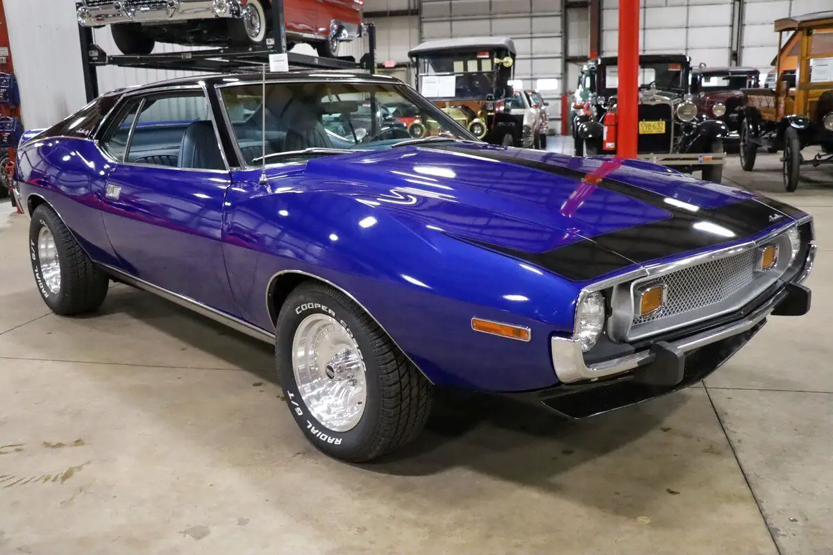 Vehicle Original VIN : A3C797H310812GR Auto Gallery is thrilled to present this stunning 1973 AMC Javelin, a true muscle car with a captivating design and performance that stands out from the crowd. Finished in the striking Ocean Blue with a two-tone black and blue paint scheme, this Javelin has been meticulously restored, making it an absolute head-turner. The light blue leather interior complements the exterior beautifully, creating a dynamic look that is as stylish as it is powerful. Under the hood, this Javelin is powered by the 304ci V8 engine, delivering plenty of muscle for an exhilarating driving experience. The engine is paired with an automatic transmission, ensuring smooth shifts and a pleasurable ride, whether you're cruising down the highway or navigating through city streets. The car has only 50 miles on it since the restoration, making it a near-new classic in pristine condition. This car underwent a comprehensive restoration 1 year ago, with the body completely stripped and refinished to perfection. The body and paintwork were done professionally, and the new rims and tires add to the aggressive stance and performance of the car. The interior retains the original stock features, with the addition of fresh new carpet, making the driving experience just as comfortable as it is thrilling. A true classic muscle car, the AMC Javelin delivers a balance of power, style, and unique flair, making it a standout in any collection.