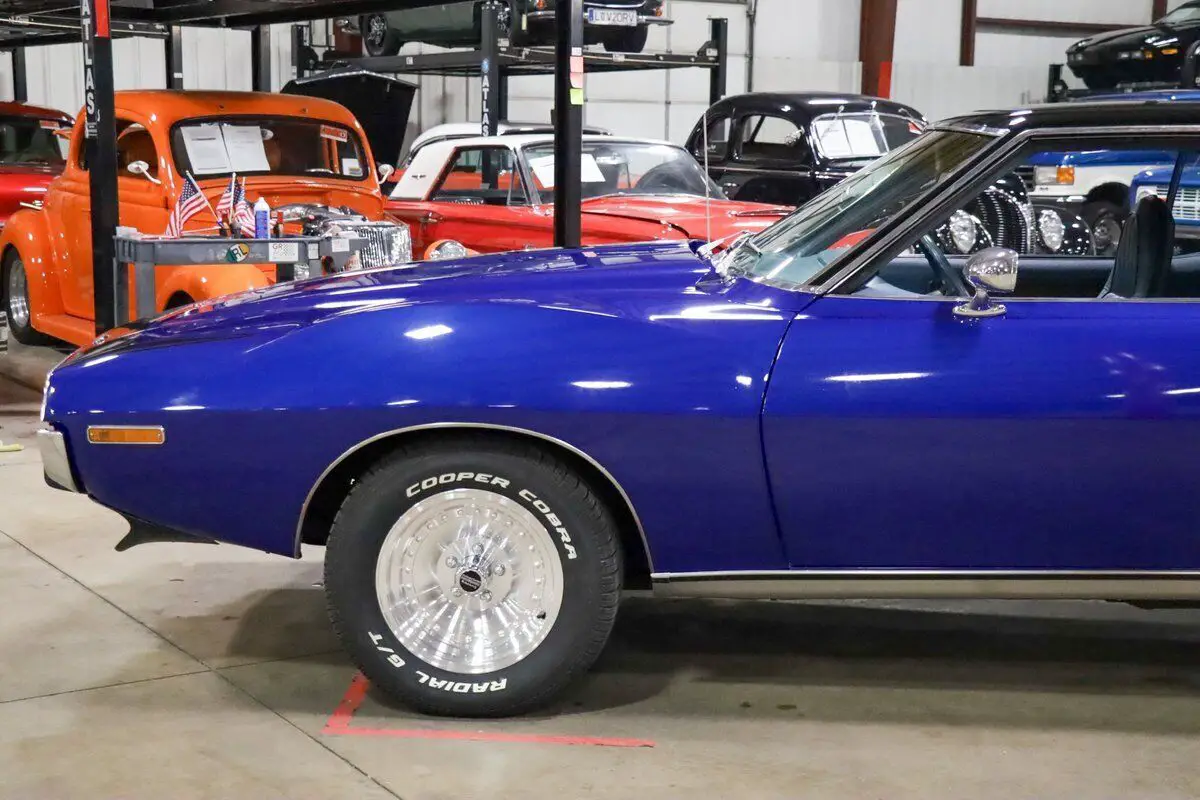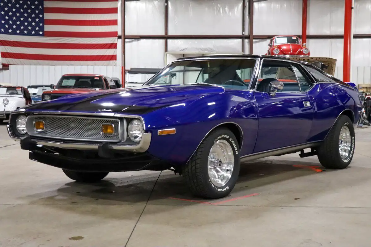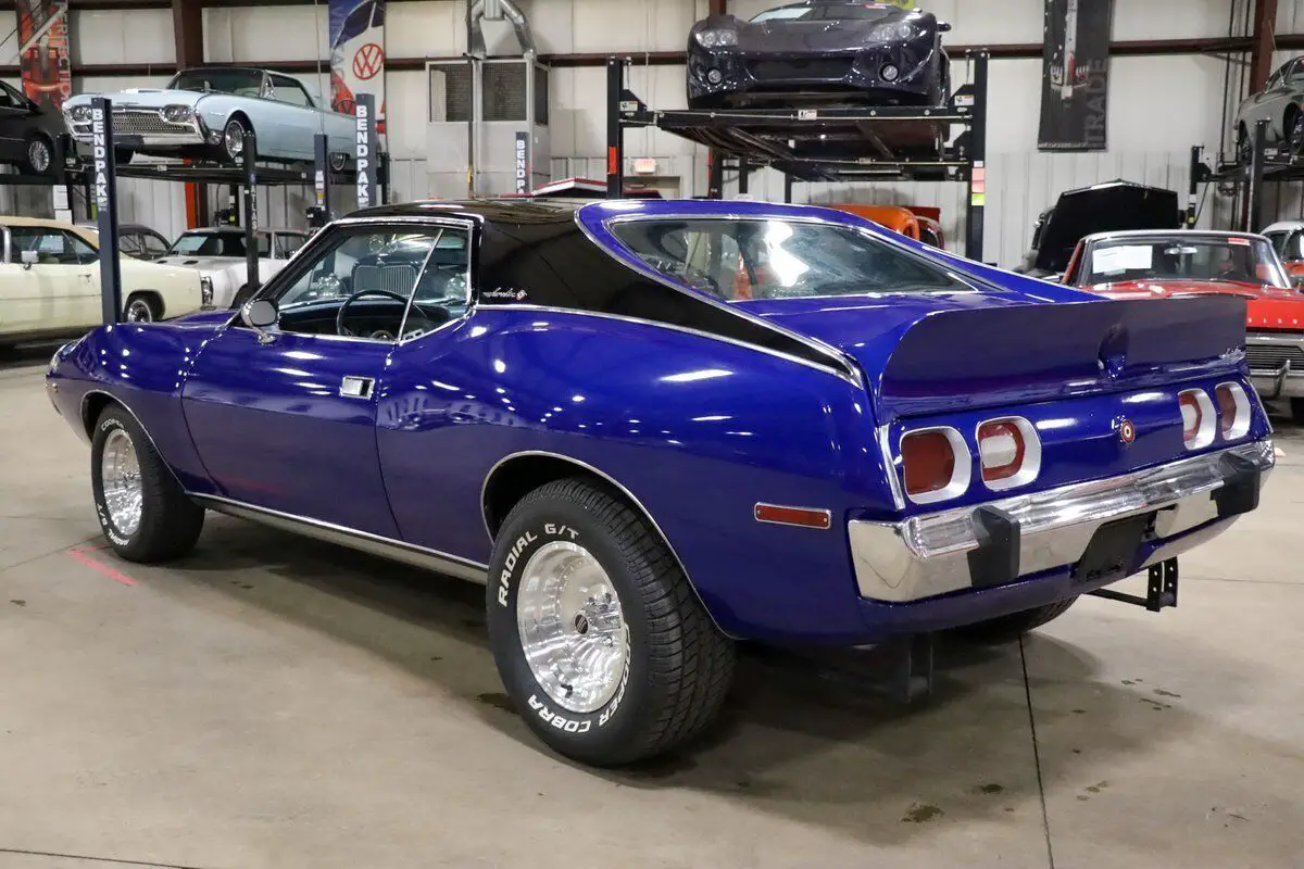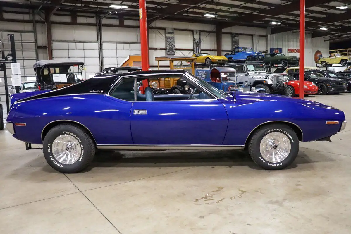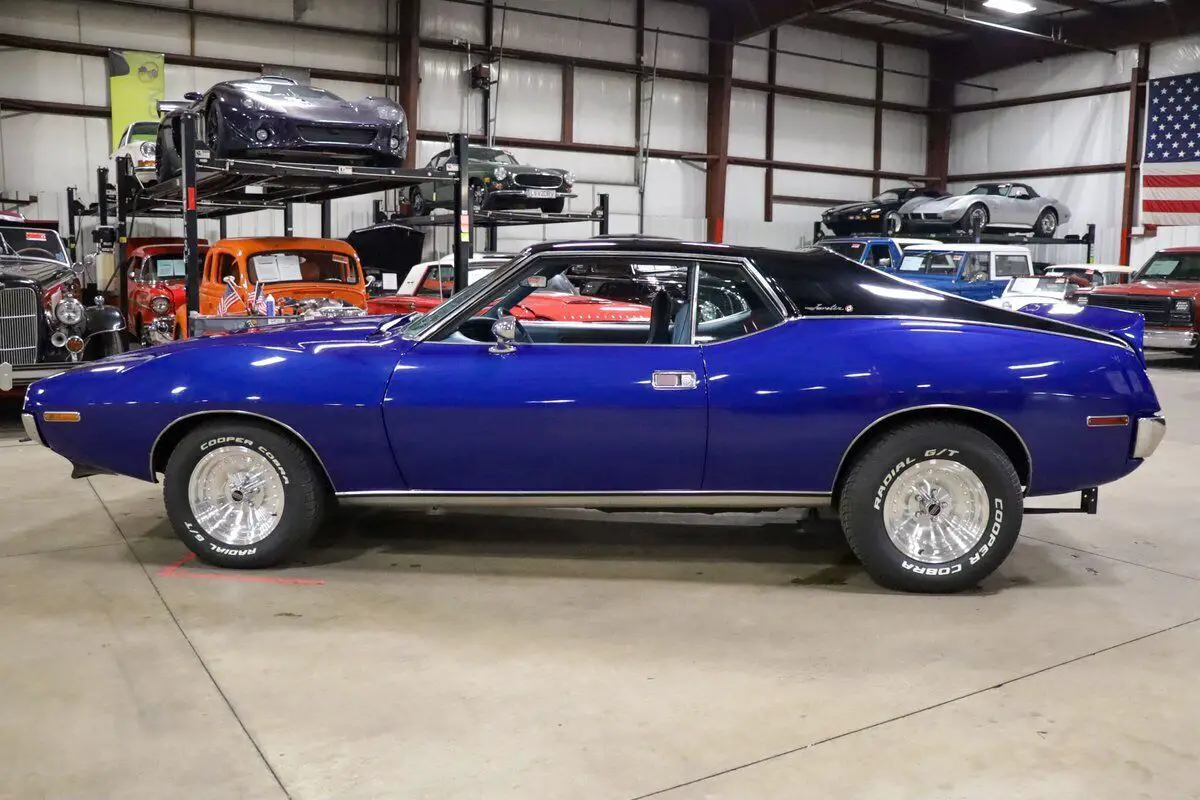 Vehicle Original VIN : A3C797H310812GR Auto Gallery is thrilled to present this stunning 1973 AMC Javelin, a true muscle car with a captivating design and performance that stands out from the crowd. Finished in the striking Ocean Blue with a two-tone black and blue paint scheme, this Javelin has been meticulously restored, making it an absolute head-turner. The light blue leather interior complements the exterior beautifully, creating a dynamic look that is as stylish as it is powerful. Under the hood, this Javelin is powered by the 304ci V8 engine, delivering plenty of muscle for an exhilarating driving experience. The engine is paired with an automatic transmission, ensuring smooth shifts and a pleasurable ride, whether you're cruising down the highway or navigating through city streets. The car has only 50 miles on it since the restoration, making it a near-new classic in pristine condition. This car underwent a comprehensive restoration 1 year ago, with the body completely stripped and refinished to perfection. The body and paintwork were done professionally, and the new rims and tires add to the aggressive stance and performance of the car. The interior retains the original stock features, with the addition of fresh new carpet, making the driving experience just as comfortable as it is thrilling. A true classic muscle car, the AMC Javelin delivers a balance of power, style, and unique flair, making it a standout in any collection.