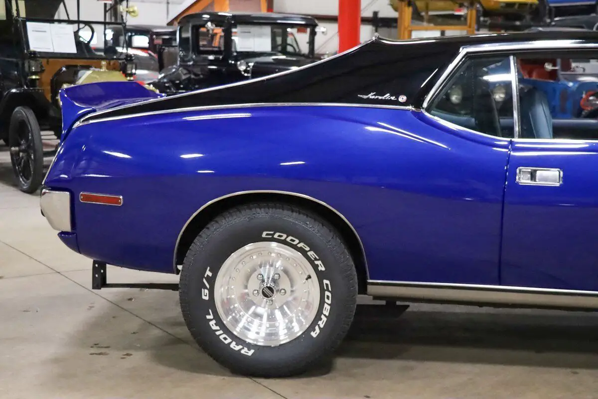 GR Auto Gallery is thrilled to present this stunning 1973 AMC Javelin, a true muscle car with a captivating design and performance that stands out from the crowd. Finished in the striking Ocean Blue with a two-tone black and blue paint scheme, this Javelin has been meticulously restored, making it an absolute head-turner. The light blue leather interior complements the exterior beautifully, creating a dynamic look that is as stylish as it is powerful.