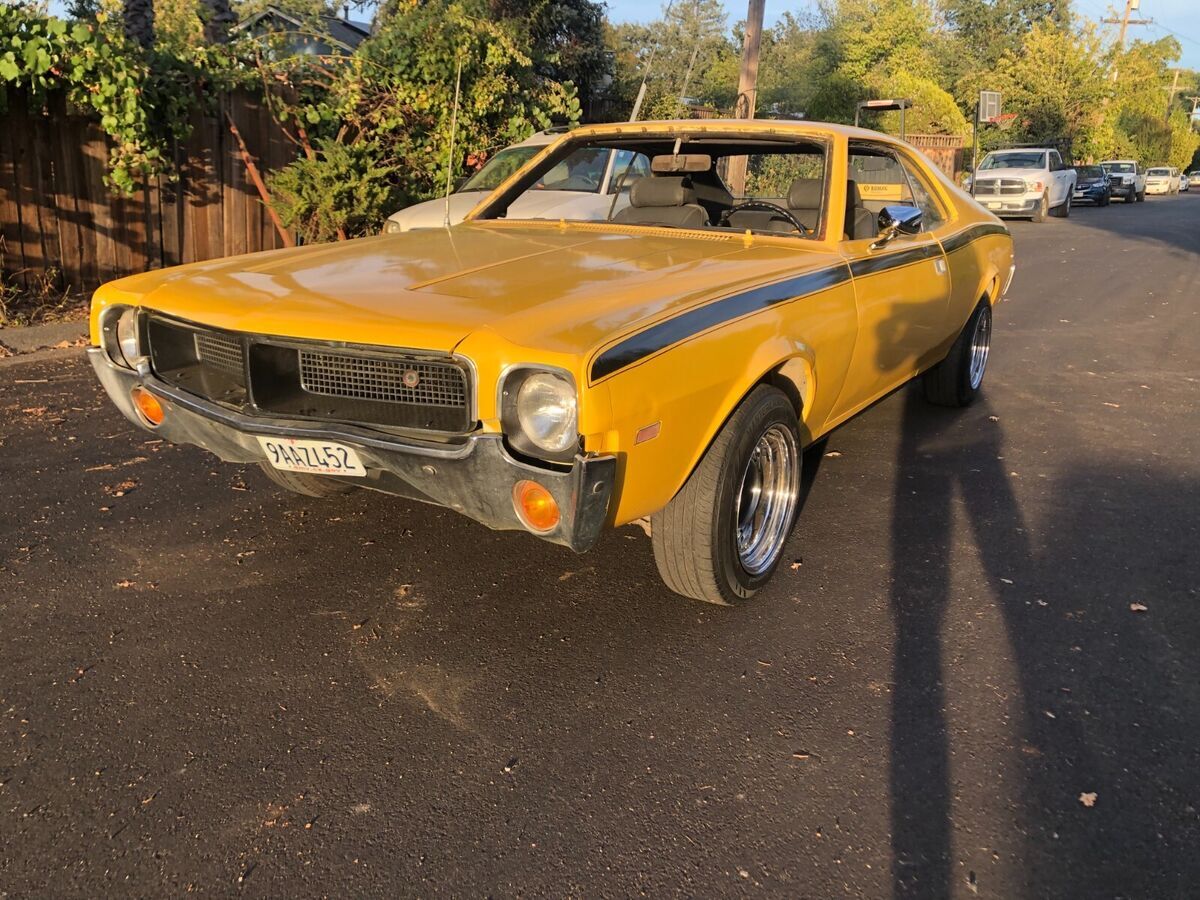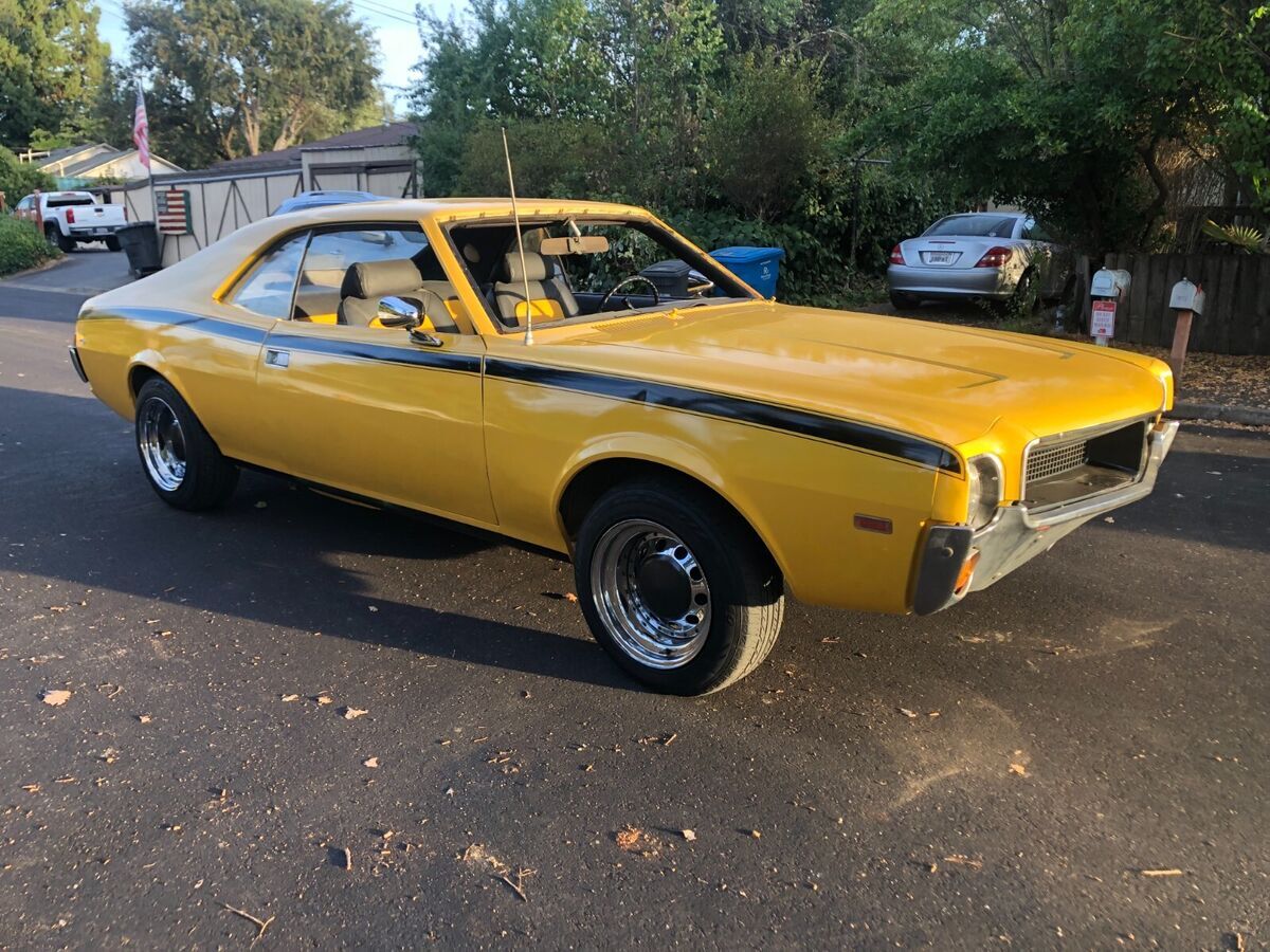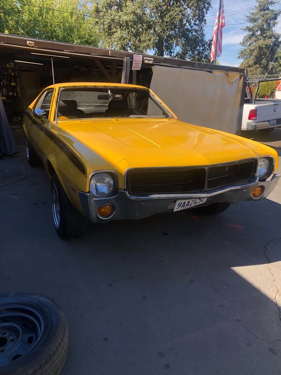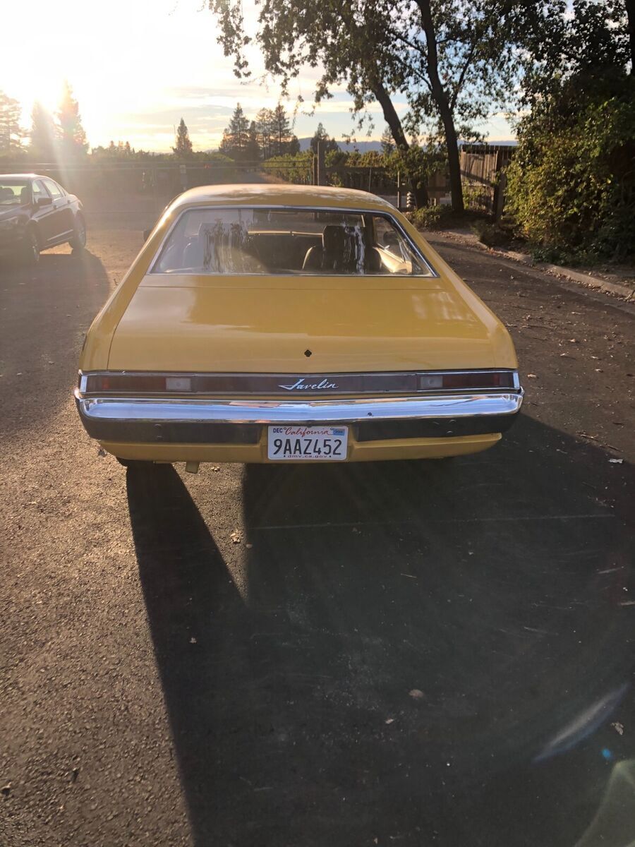 1968 AMC Javelin 290cu auto transItems replaced in past year:Carburetor, starterBrake linings, 2 wheel cylindersplugs, points, condenser, rotor & capfan belts, radiator & heater hosesheater valve, Radiator corevoltage regulator Air cleaner & filterwindshield, master cylindergas tank boiled out & inside coatednew carpet, door panels, headliner & seats all reupholstered2 brand new tires 2 with good treadchrome rims, new mirrors, consoledent in front bumper, some dings, driver window difficult to roll up- have replacement hardware not installed.Clean title, no smog needed, licensed through Dec 2025Runs & drives well