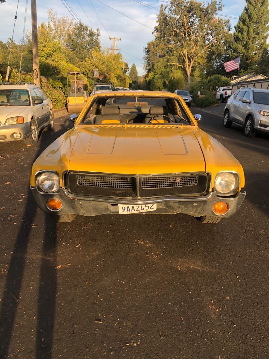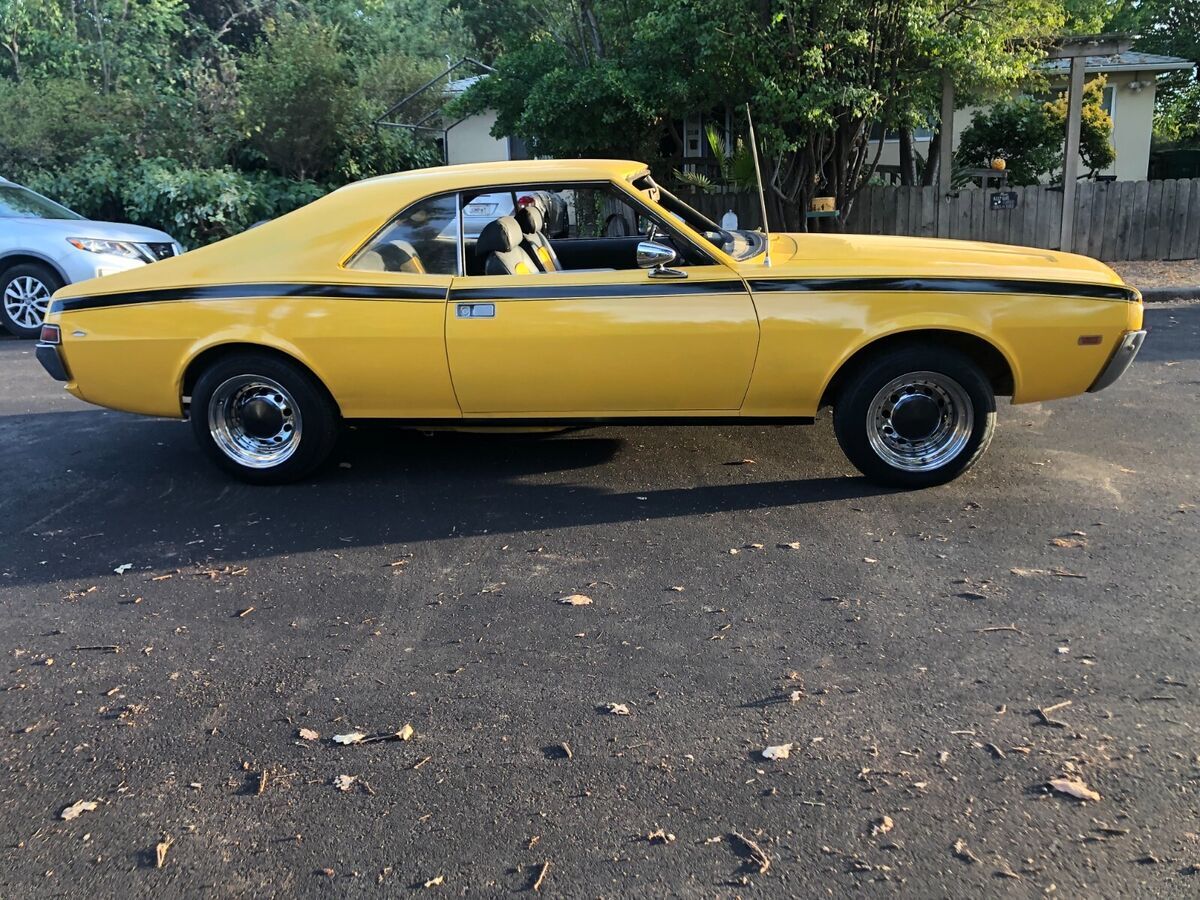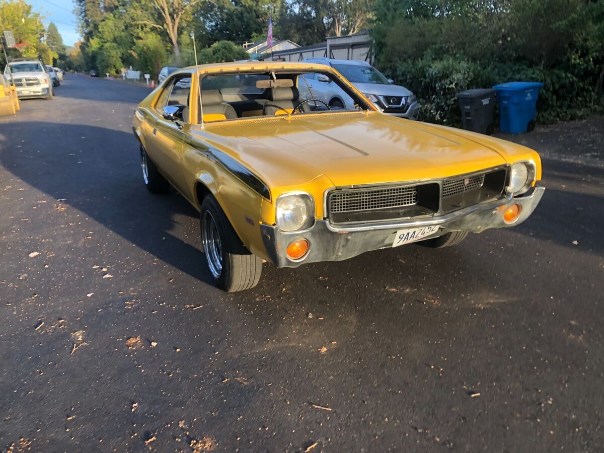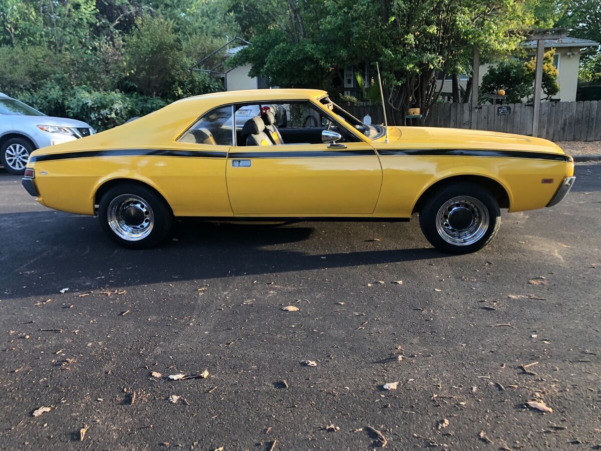 1968 AMC Javelin 290cu auto transItems replaced in past year:Carburetor, starterBrake linings, 2 wheel cylindersplugs, points, condenser, rotor & capfan belts, radiator & heater hosesheater valve, Radiator corevoltage regulator Air cleaner & filterwindshield, master cylindergas tank boiled out & inside coatednew carpet, door panels, headliner & seats all reupholstered2 brand new tires 2 with good treadchrome rims, new mirrors, consoledent in front bumper, some dings, driver window difficult to roll up- have replacement hardware not installed.Clean title, no smog needed, licensed through Dec 2025Runs & drives well