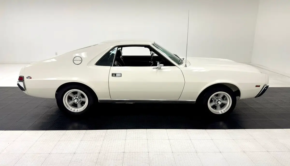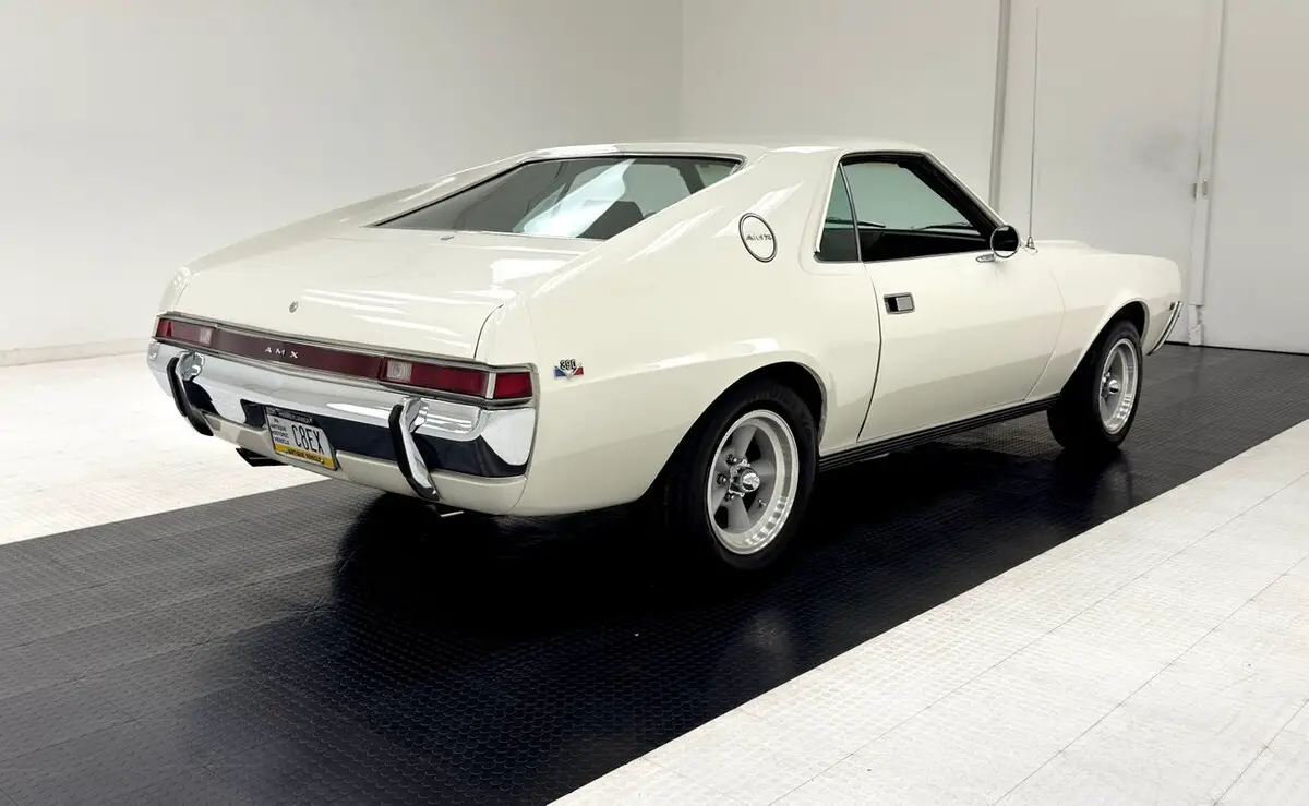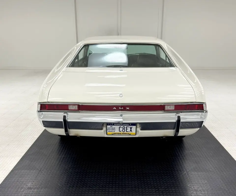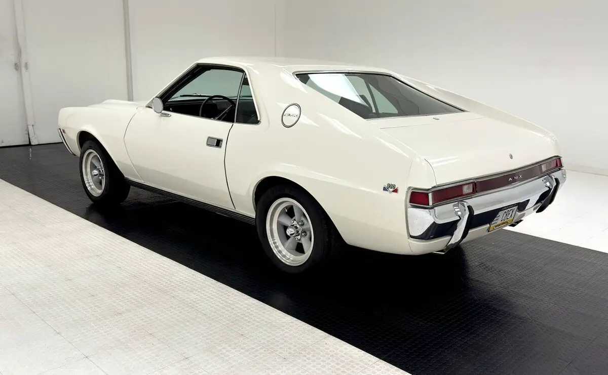 1969 AMC AMX For consignment, a 1969 AMC AMX showing 26,944 miles, but the true miles are unknown. This one sports the 390ci V8, a 750 cfm Holley carb and Group 19 components that include a Mallory distributor, and Edelbrock valve covers. Exterior Sitting on American Racing Torque Thrust 5 spoke wheels, this racy car with its long front hood and beautiful long sloping back has its luster on the Frost White paint from just over 20 years ago. Just a few cosmetic pimples of rust showing mostly on the lower doors. Gaps are decent and badging is kept to a minimum with a simple circular AMX on the wide B pillar. Chrome is minimal as well with just the bumpers which are inset into the body on the front and rear. A ribbed stainless rocker trim is also seen grounding the white along with the wheels. Looking at this design it was really ahead of its time with the inset door handles, and the flush mounted bumpers. Dual chrome tipped exhaust pipes peek out from underneath the rear bumper. Interior Grabbing onto the inset door handle and giving it a swing, we see a clean black vinyl smooth panel covering the door, a large rectangle of wood appliqué is framed by thin chrome and houses the window crank. A big armrest and door actuator for the inside is also hung on the middle of the interior doors. Moving inside dual high back buckets with tuck and roll inserts and smooth bolsters and headrests all in black vinyl and all looking fab. A wood appliqué center console races from front to back and houses the shifter as well as camouflages the center hump. In the center of the dash rising out of the center console is a lighter and "ash " receiver, AM/FM radio and another large wood appliqué panel with 2 round vents and a hidden speaker which curves itself on to the dash top. In front of the tri-pointed star center wood rimmed steering wheel is the original dash with a trio of inserts circular gauges with white centers and black ringed outers. Temp and fan controls are deeply inset to drivers left as are the headlight and wiper knobs. Very nice black carpet covers the floors and with no rear seat, there is plenty of storage and black carpet covering the "hatchback" rear interior. A seam free, smooth black headliner hovers above all this 1969 design interior. Drivetrain With being the beneficiary of a complete engine rebuild, the original 390ci V8 which still pumps out 315hp is topped with a 4-barrel Holley 750cfm carburetor. On the back is a 3-speed M-12 automatic transmission and this throws power rearward to an AMC Twin Grip 3.15 rear axle. There is a rebuilt correct fuel pump with a vacuum pump, a K&N air filter within a shiny round air filter holder with a blue and red surrounding stripe. This is all within a highly detailed engine bay, with no corrosion and supple hoses and aluminum ribbed Edelbrock valve covers. Wilwood disc brakes are employed in the front and drums bring up the rear. Undercarriage Underneath is rust free with white unibody rockers, floor pans and toe kicks. A black painted rust free driveshaft and rear pumpkin are seen as well as black painted drum brakes and suspension all around. The bottom end of the engine is drip free with a nice transmission bell housing. Newer trunnions, ball joints, tie rod ends, bushings, idler arm and bearings are seen on the suspension and steering, and the consigner stated the drive shaft has been balanced. A Dynomax dual muffler system is installed. Drive-Ability She fired right up and hit the test loop with obvious power underfoot. The interior is clean and comfortable and the ride provides smooth acceleration, good handling, solid stopping, and quiet shifting for the automatic were experienced. The A/C is inoperable, and the reverse lights do not illuminate, but all other functions operate as they should. While Classic Auto Mall represents that these functions were working at the time of our test drive, we cannot guarantee these functions will be working at the time of your purchase. AMX's have quietly gained a new audience and both values and desirability reflect the renewed interest in this somewhat rare and certainly unique pony car. When we have the honor to represent them at the mall, they generally race out of here in short order. Without the racing stripes, this one is a virtual sleeper, but if you know, you know. It checks all the boxes! A9C397X178908 A-AMC 9-1969 C-3 Speed Automatic Floor Shift 3-AMX 9-2 Door Hardtop 7-AMX X-390ci V8 4bbl 315hp 178908-Sequential Unit Number DOOR TAG BODY R016326-Production Sequence # MODEL 6939 7-AMX Coupe TRIM 931F-Charcoal Vinyl Buckets PAINT 72A-Frost White Classic Auto Mall is home to more than 1,000 classic and collectible vehicles for sale via consignment in a climate controlled 336,000-square foot showroom (that's more than 8 acres!). The largest single location consignment dealer of classic and collectible vehicles in the country is located in Morgantown, Pennsylvania, just 1-hour west of Philadelphia off Exit 298 of the I-76 Pennsylvania Turnpike. For more information visit or call us at 610-901-3804. Contact us anytime for more information or to come see the vehicle in person. There is no guarantee of mileage. A $299 Dealer Administrative fee is not included in the advertised price. With so many great cars, you know we have a lot to talk about, and we do that each week on the Classic Auto Mall Podcast with host Stewart Howden. Stewart discusses new inventory as well as trends in consignments and car prices, while interviewing celebrities and automotive professionals about amazing cars and their history. Tune in each week to the Classic Auto Mall Podcast wherever you enjoy listening. You can also watch on YouTube!