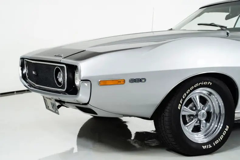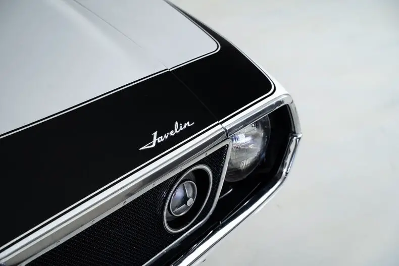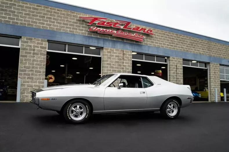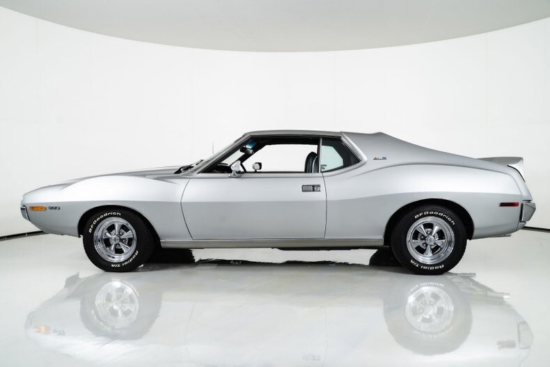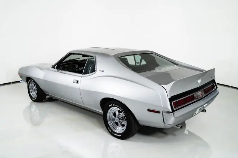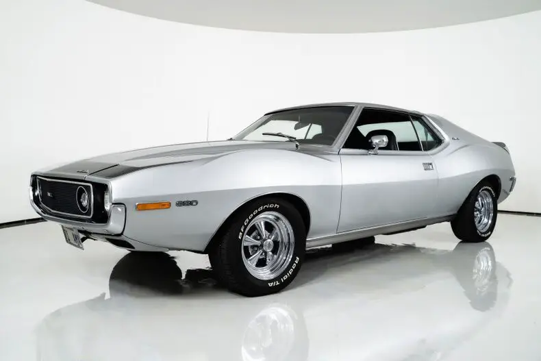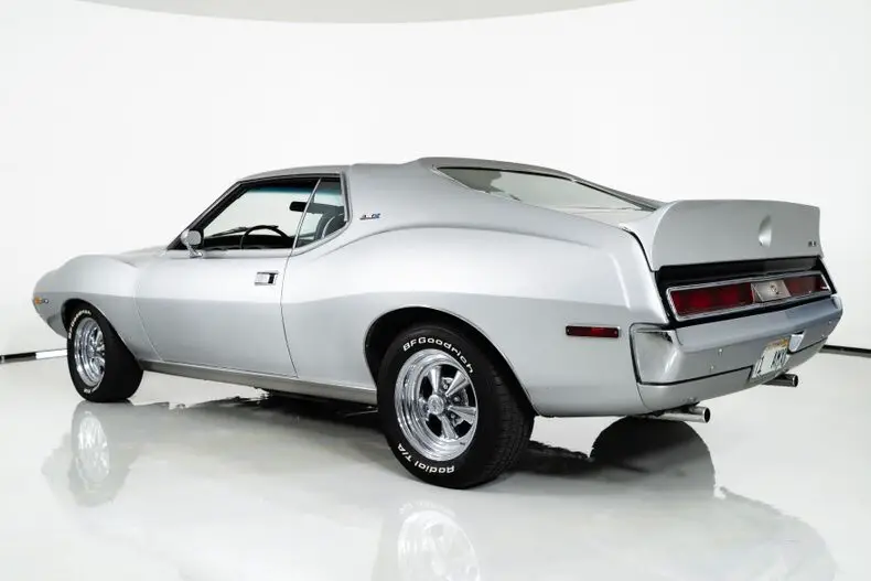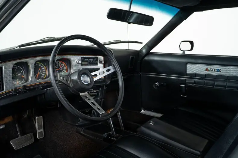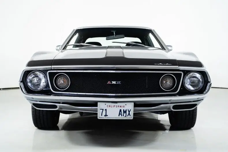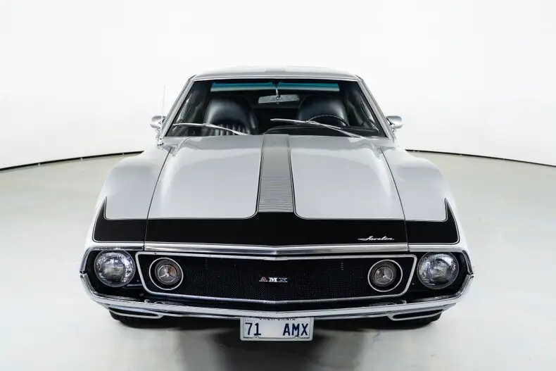 This 1971 AMC Javelin AMX Go Pack for sale has a 360 C.I. V8 w/ 4 Barrel Carburetor, 3 Speed Automatic Transmission, 3.15 Twin Grip Posi Rear Axle, Silver Lacquer Exterior with Black Stripes, Black Vinyl Bucket Seat Interior, 15" Crager S/S Chrome Aluminum Wheels, 4 Wheel Power Disc/Drum Brakes, Power Steering, Air Conditioning, Go Pack Air Grabber Cowl Hood, Tick Tock Tach and 140 MPH Speedometer, Believed to be an all original Car! Blaze Your Own Trail with this Rare and Beautiful Example of AMC Muscle!