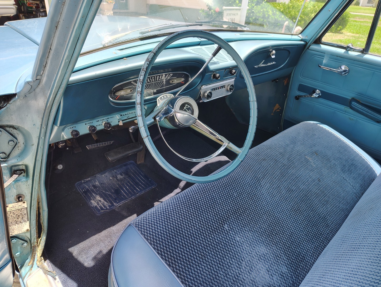 1963 Rambler American 330 Sedan. Project Car. True survivor car, 22,000 miles. Excellent body and paint. Interior has been re-upholstered. Headliner is stained. I Recently purchased this car to restore. It had been on the road by the previous owner and was running when I purchased it. The car was having electrical issues when it was delivered to me. I installed a new battery, coil and voltage regulator and suddenly the generator caught fire ruining the ignition wiring harness up to the voltage regulator. The fire was contained to the electrical system. No fire damage occurred to the other areas of the car. I do not have the ability to repair the damage which is forcing me to sell the car. This car has power steering, automatic transmission, manual AM radio and windshield washers. Car was painted once and the paint looks good. This car is worthy of restoration. Asking $5500