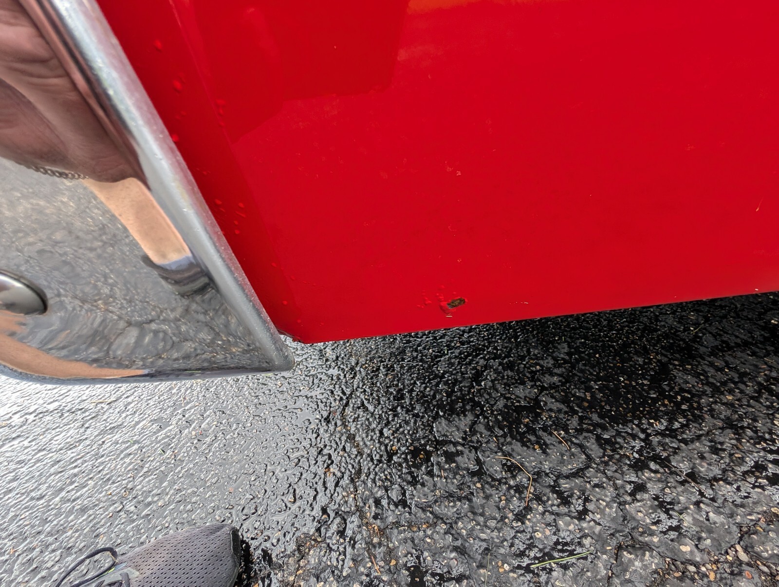 Photos shows some bubbling above drivers quarter and some small paint rust blemishes. Underneath is in great shape, very clean, no rust and all original.