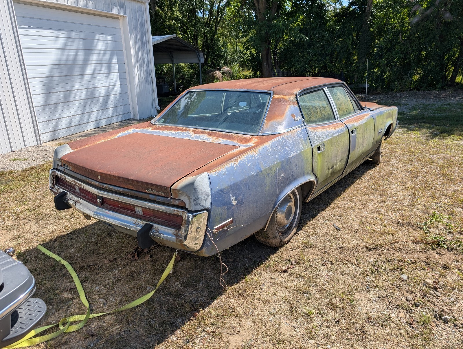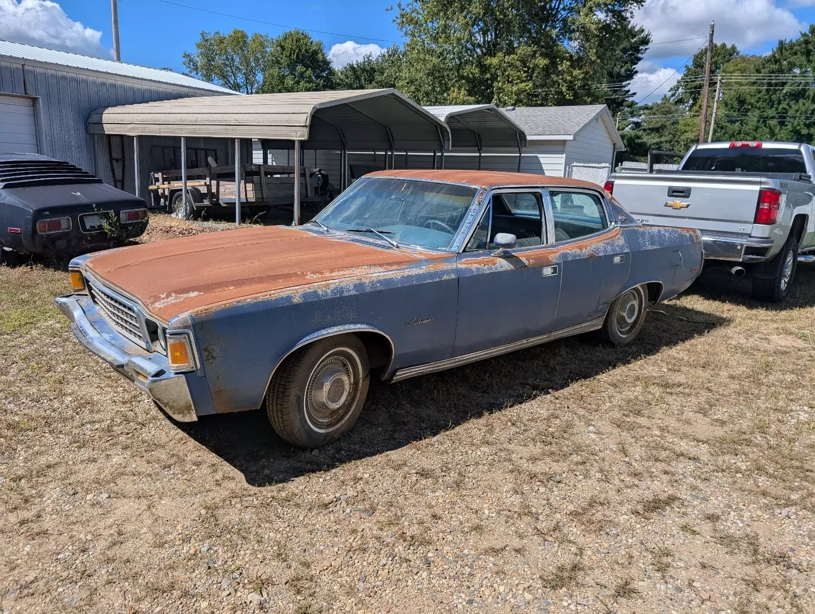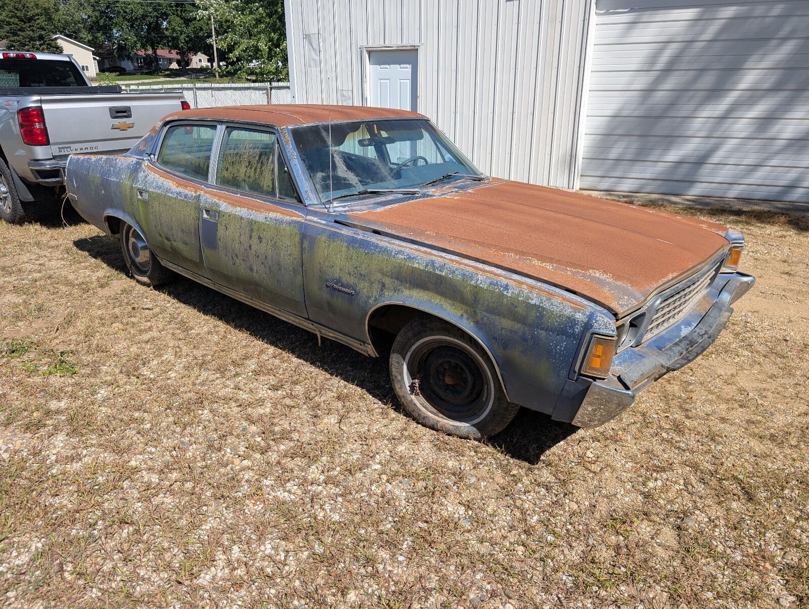 1973 Ambassador 360 v8, automatic transmission, ps, pb, complete car. Very little rust. Does not run but turns over.