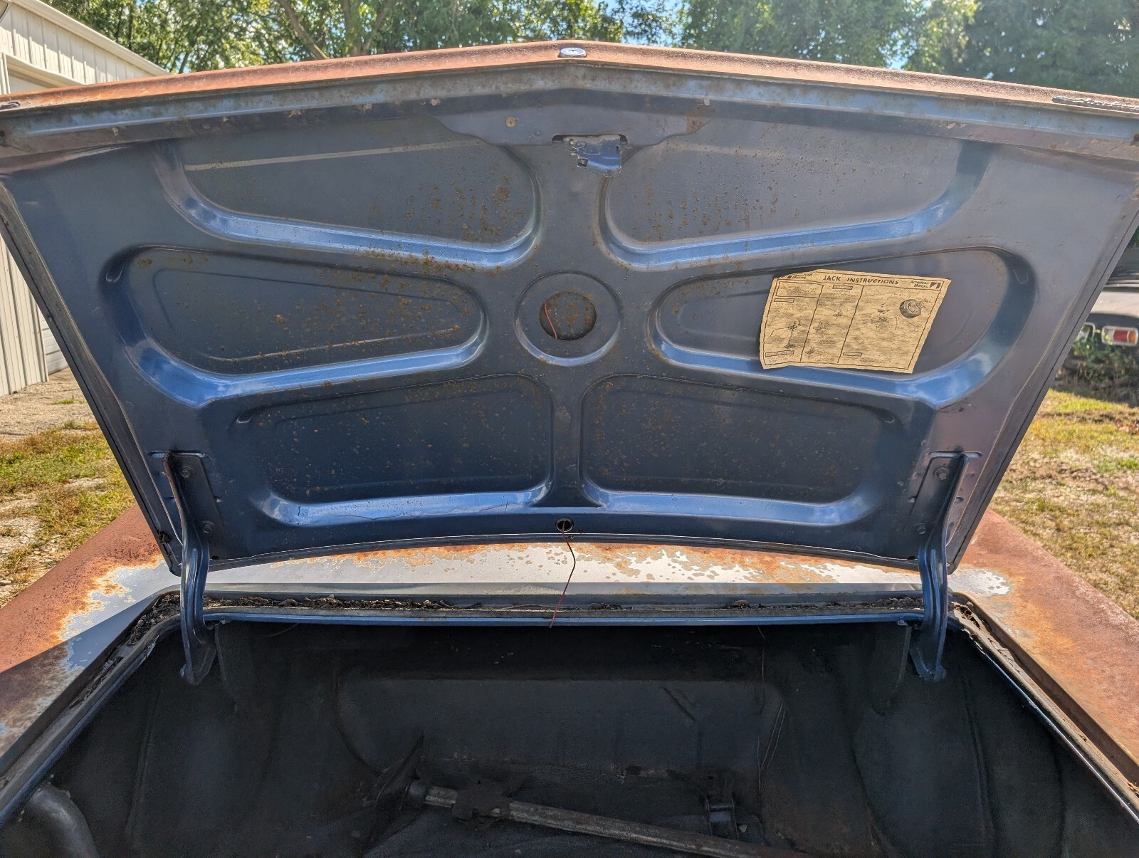 Great project or parts car. Very little rust and underneath is quite clean. Car rolls and could be loaded on a trailer easily. Wouldn't take much to get it on the road. Hasn't been on the road in over 8 years but engine turned over every few years and turns free with a fresh battery.