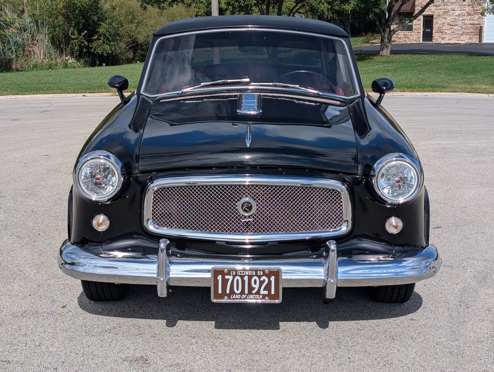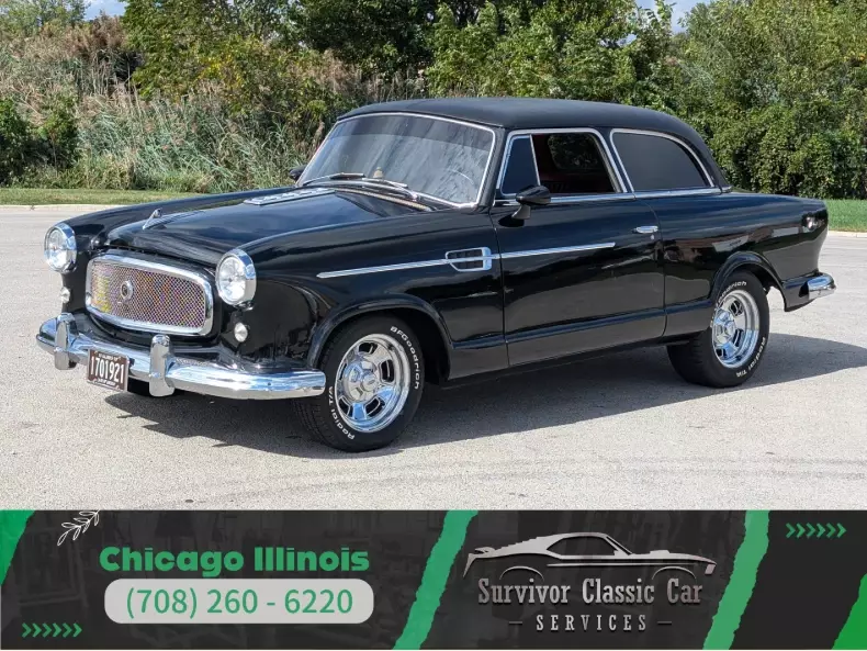 Survivor Classic Car Service Chicago is proud to present this lightly modified 1959 Rambler American. Under the hood sits a peppy 195.6 cubic inch inline-6 factory rated at 127 horsepower. Power is sent through a 30speed manual transmission with an electronic overdrive unit to the rear axle spinning the bright chrome Cragar wheels. A set of BF Goodrich tires give a timeless look. The interior has been completely gone through and updated with a two-tone black and red styling. The roof has also had a vinyl top added, not something you would have seen from the factory! Many have noted how this Rambler looks like a '55 Chevy Belair, just at 3/4 size!