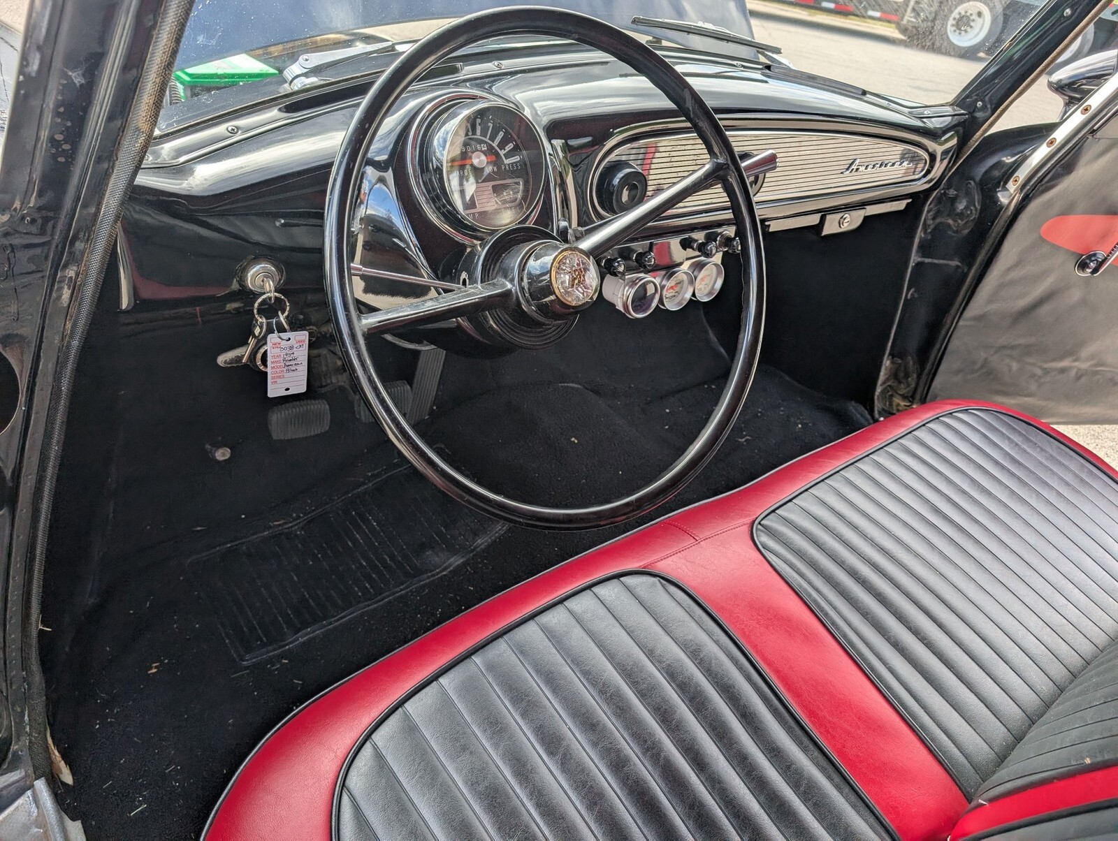 Aftermarket gauges under the dash inform you of the oil pressure, water temp, and RPMs. The transmission shifts easily through all the gears and the overdrive engages easily with no fuss. The straight-six has had a bit of work to make it surprisingly peppy when the need arises. The side and rear windows are tinted, as is the top portion of the windshield, which adds a lot of style to the exterior and contrasts well against the chrome. A few other custom touches have been added, such as the hood vents from a first-generation Camaro, as well as the fender vents from a late-model Escalade. This Rambler has a lot of style, plenty of pep, and is sure to be a conversation starter!