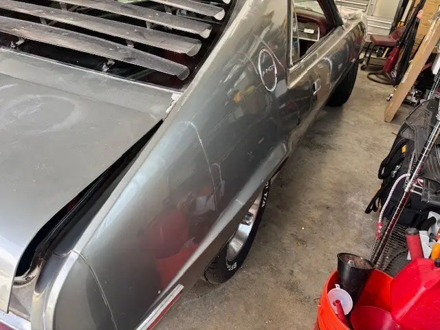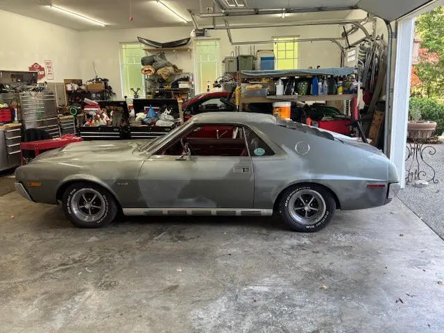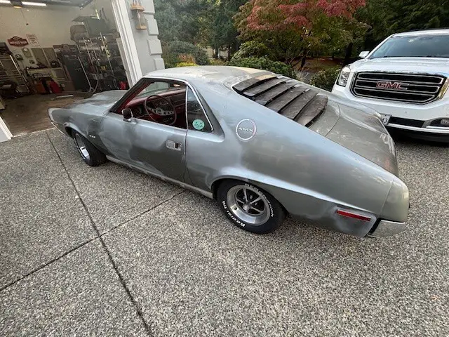 ORIGINAL 1970 AMX WITH ORIGINAL 360 AND T10 4 SPEED, RUNS GREAT, SHIFTS GREAT, GO PACK WITH DISC BRAKES,POSI, ALL RAM AIR PARTS ARE COMPLETE, ORIGINAL AIR CLEANER, SONIC SILVER WITH RED LEATHER INTERIOR,BODY IS VERY STRAIGHT AND RUST FREE, NEEDS PAINT WHICH WAS LAST THING ON MY LIST BUT MY INTERESTS HAVE CHANGED, GOOD GLASS ALL AROUND, BRAND NEW LEGENDARY RED LEATHER SEAT COVERS INSTALLED,NEW CARPET, HEADLINER, NEW LEGENDARY DOOR PANELS AND CHROME TRIM INCLUDED BUT NOT INSTALLED, RARE FACTORY TILT WHEEL, FACTORY AM RADIO IS THERE BUT NOT HOOKED UP AS I WAS GOING TO UPGRADE STEREO SYSTEM, WHEELS HAVE BEEN DETAILED WITH NICE TIRES, NEWER EXHAUST, BUMPERS HAD BEEN RECHROMED, ALL NEW WEATHERSTRIPPNG, WINDOW FELTS, DECALS INCLUDED, ORIGINAL SPACE SAVER SPARE TIRE, JACK AND CANNISTER WITH NEW TRUNK MAT. NEW HOOD INSULATION AND GLOVE BOX LINER INCLUDED. CAR IS COMPLETE WITH NO PARTS TO BUY. BRAND NEW BATTERY, NICE GRILL AND HEADLIGHT BEZELS.