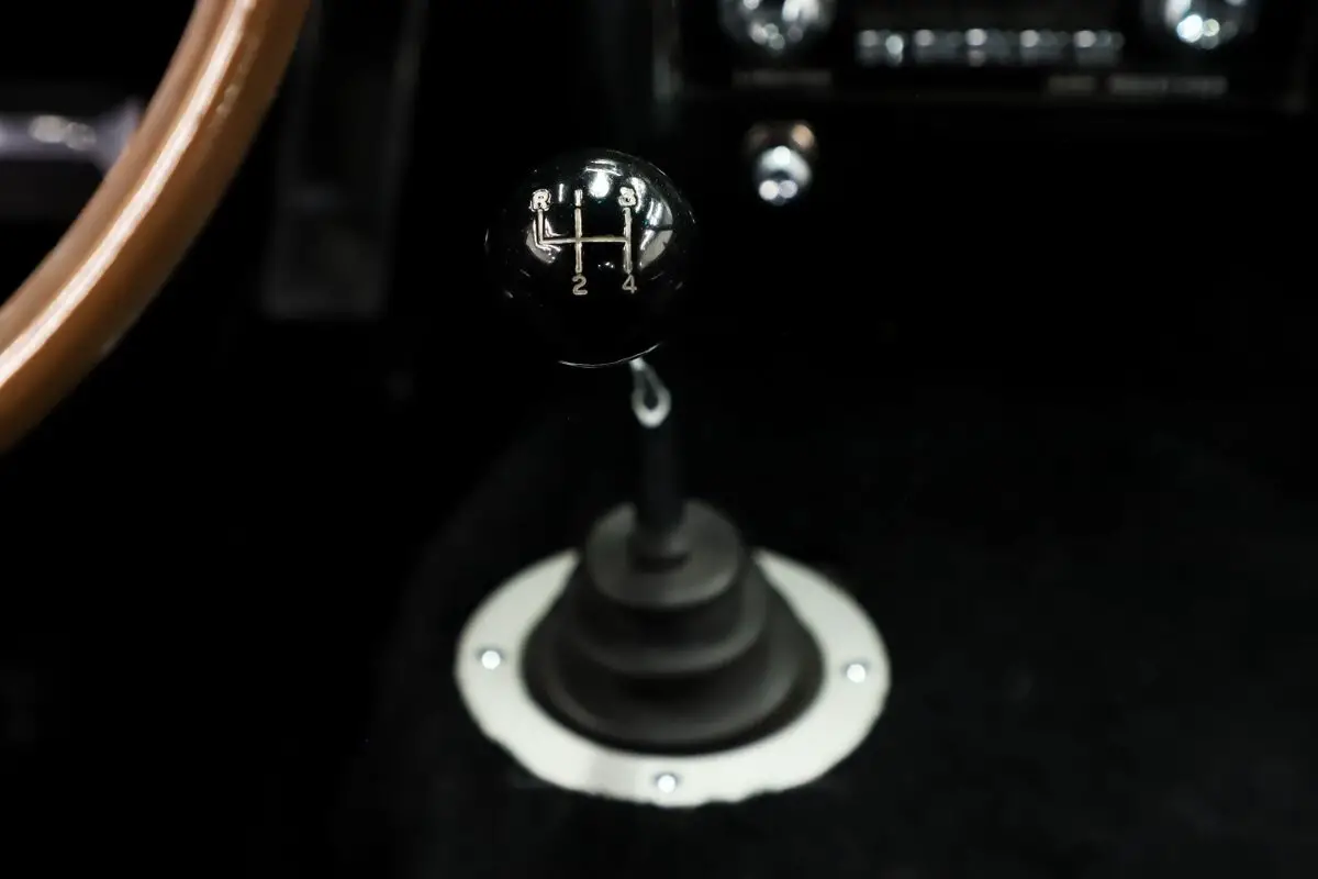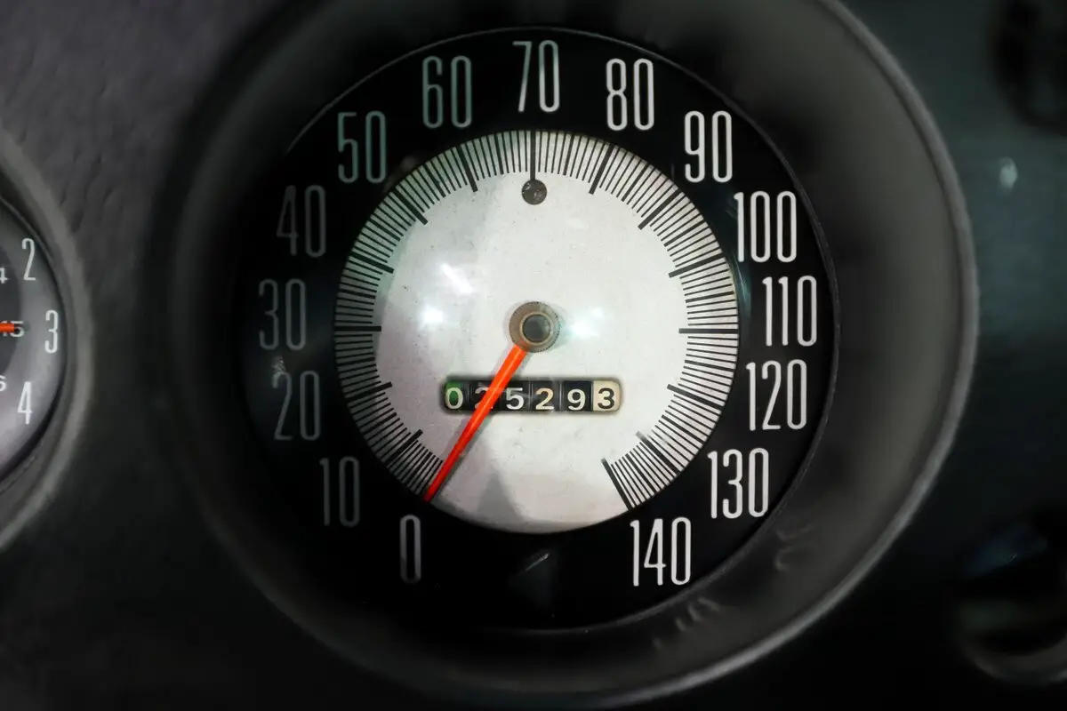 UNDERSIDE: Rotisserie restored! Solid body colored floorboards! Every detail has been attended to on the underside. The steering system has been rebuilt, and many components were replaced. It is equipped with a sway bar and the front suspension fully restored with new parts including trunnion springs and shocks. The rear suspension was also restored with new leaf springs and shocks too. It has refreshed front disc brakes with new lines and the emergency brake is hooked up too. The dual exhaust system was completely replaced with fresh tubes, mufflers, and polished tips exiting under the rear bumper. The gas tank was also replaced and has new fuel lines front to back. When looking up at the rebuilt engine it is nicely painted metallic blue just like when it left the factory, and the starter was replaced. The four-speed manual transmission was rebuilt by Southern Gear. The driveshaft has been rebuilt and transfers power back to a rebuilt 3.54 Twin Grip rear end.