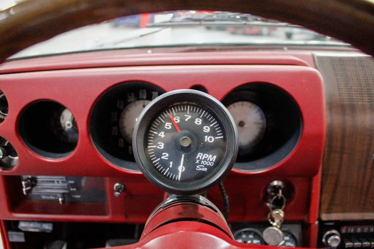 Inside, the freshly upholstered red interior maintains the SST's original character while incorporating practical upgrades. Additional water and oil temperature gauges have been added for improved monitoring, and functioning heat ensures comfort in all driving conditions. The car also features power steering and power brakes, contributing to a more enjoyable and manageable drive. Underneath, the front suspension has been refreshed with all new bushings, improving handling and ride quality.